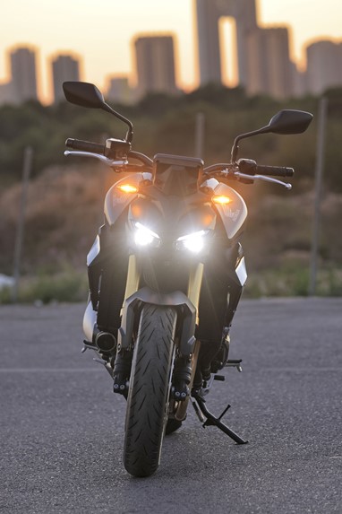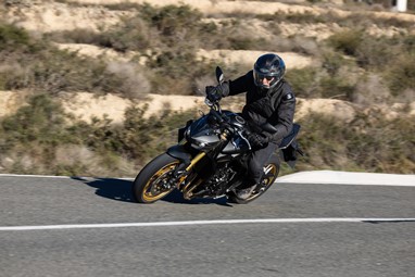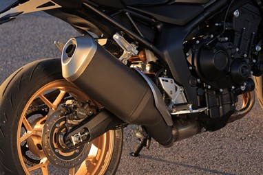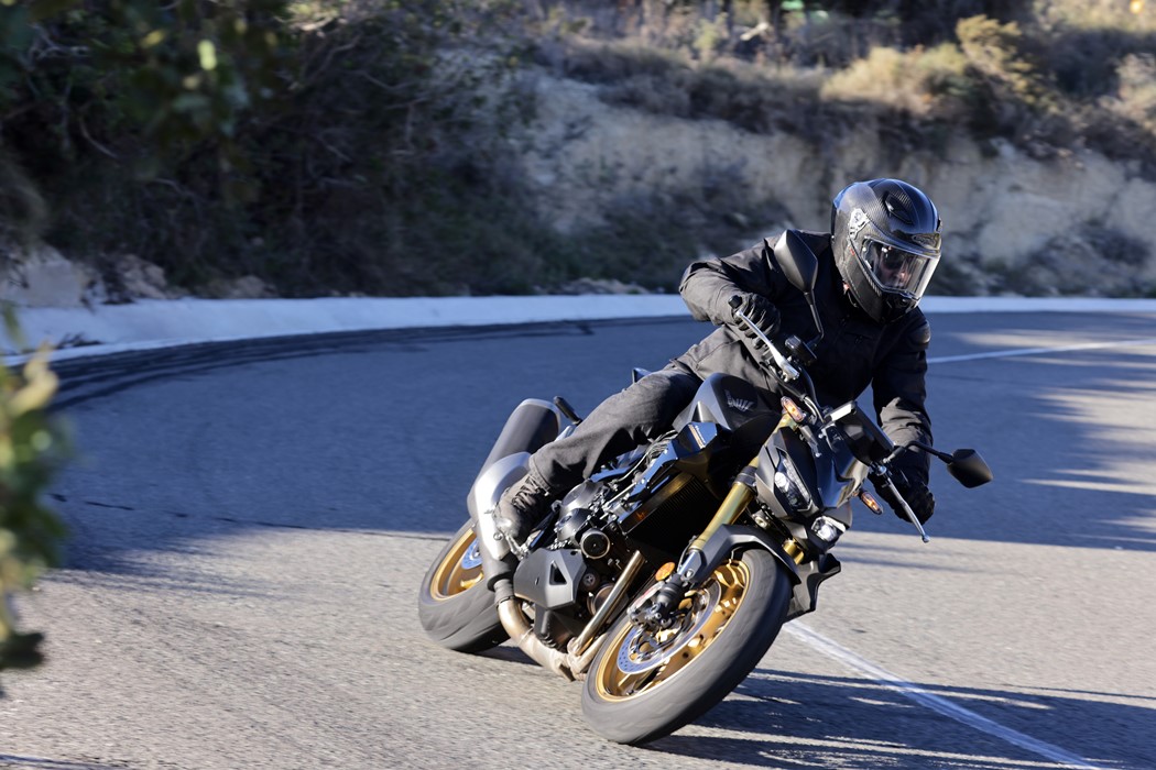 Revela também uma grande elasticidade graças a um binário máximo de 107Nm, que lhe permite responder muito bem logo a partir dos baixos regimes (pode-se rolar perfeitamente em 6ª a 50km/h e acelerar sem qualquer hesitação), entrando numa deliciosa espiral vertiginosa a partir das 6000rpm, quando a válvula de escape é accionada, que culmina para lá das 11.000 rpm.