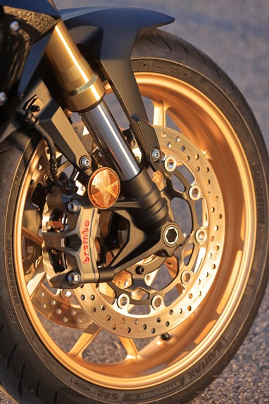 A maior excentricidade que exibe é a coloração bronzeada das rodas e das jarras da forquilha, exclusiva da versão SP que recentemente tive a oportunidade de testar nos arredores de Benidorm, durante a sua apresentação Europeia.