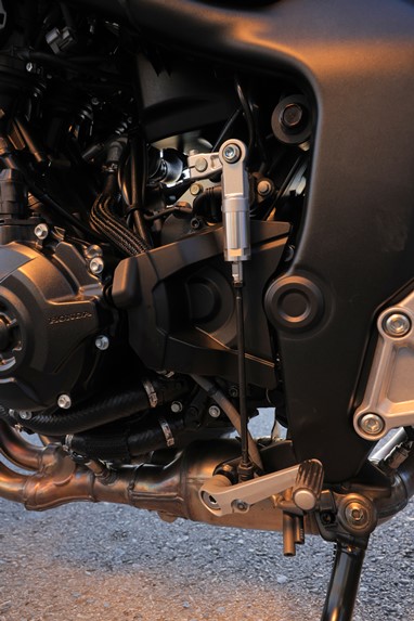 No entanto a dosagem da manete é tão boa que quase não se sente a falta de um “Cornering ABS”, já que a Hornet 1000 não está equipada com Unidade de Medição de Inércia, contando apenas com um convencional ABS de dois canais. Claro que os pneus Bridgestone S22 também contribuem significativamente para potenciar o atrito, aumentando a confiança.