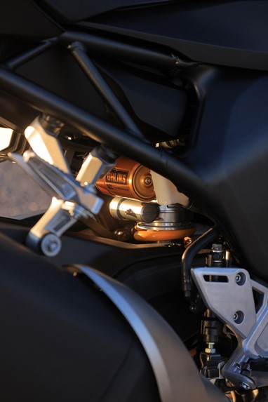 O quadro foi desenvolvido especificamente para proporcionar uma grande agilidade e uma excelente leitura da roda dianteira, além de promover uma distribuição de peso de 51-49% (frente e traseira respetivamente) que se reflete na facilidade de inserção em curva e na estabilidade sob travagem e sob aceleração. Mas tem grandes ajudas!