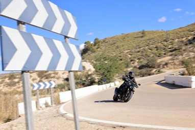 Não intimida, mas não desilude! No entando, em modo Sport o acelerador tem uma resposta talvez demasiado brusca, sobretudo para uma utilização no meio do trânsito, mas encontrei o nirvana no modo Standard, que permite um controlo mais eficaz do acelerador, permitindo desfrutar da ciclística consistente e precisa, sobretudo nas intermináveis sequências de curvas e contracurvas proporcionadas pelos arrabaldes da Sierra de Aitana.