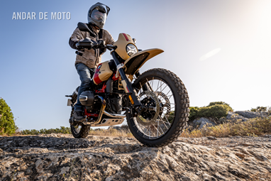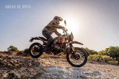 É mais robusta, imponente e orientada para o fora de estrada do que a antiga representação da R80 G/S, a R nineT Urban G/S) que a seu tempo também tive oportunidade de testar. A posição de condução é elevada e dominante e, excepção feita aos dois grandes cilindros que sobressaem de cada lado, é uma moto estreita, fácil de manobrar e que deixa gerir o seu peso de forma exemplar.