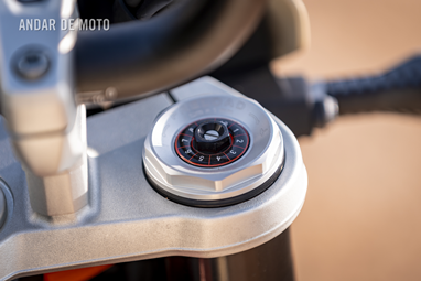 A forquilha invertida de 45mm, juntamente com o braço oscilante Paralever e o mono-amortecedor traseiro, oferecem 210mm e 200mm de curso, respectivamente, e ambos os eixos são ajustáveis em pré-carga, compressão e expansão.