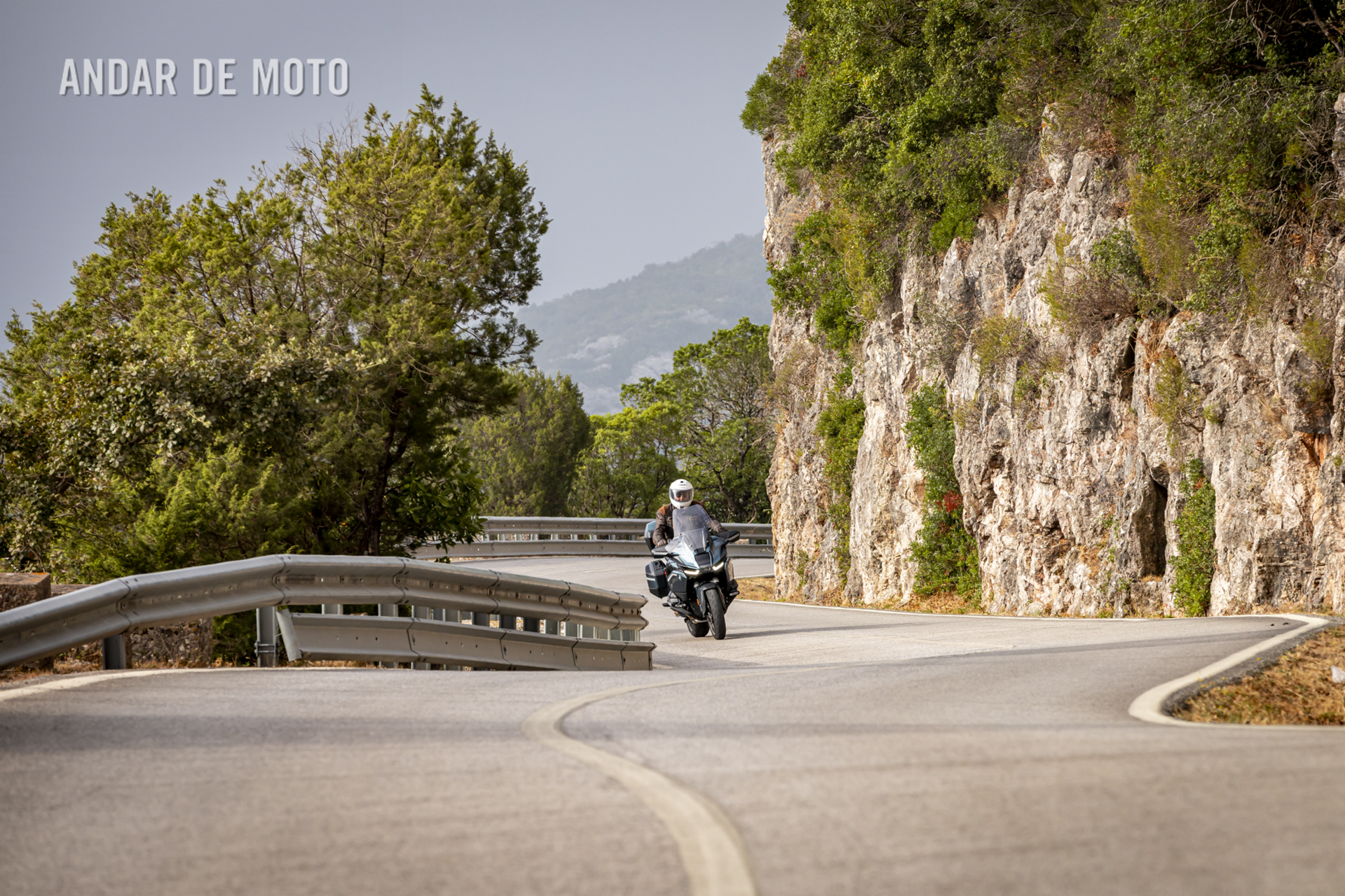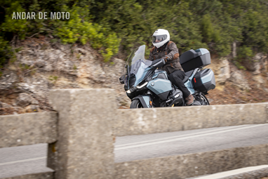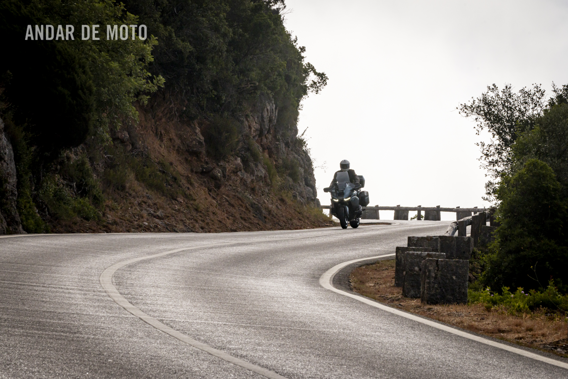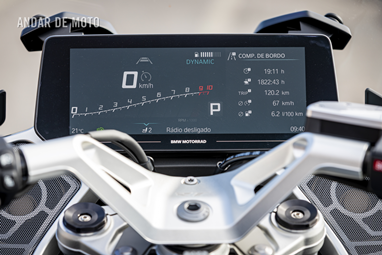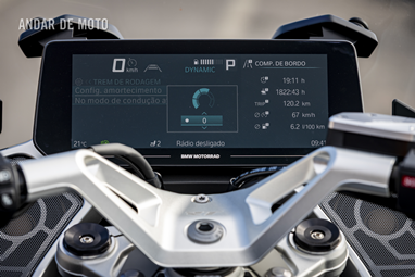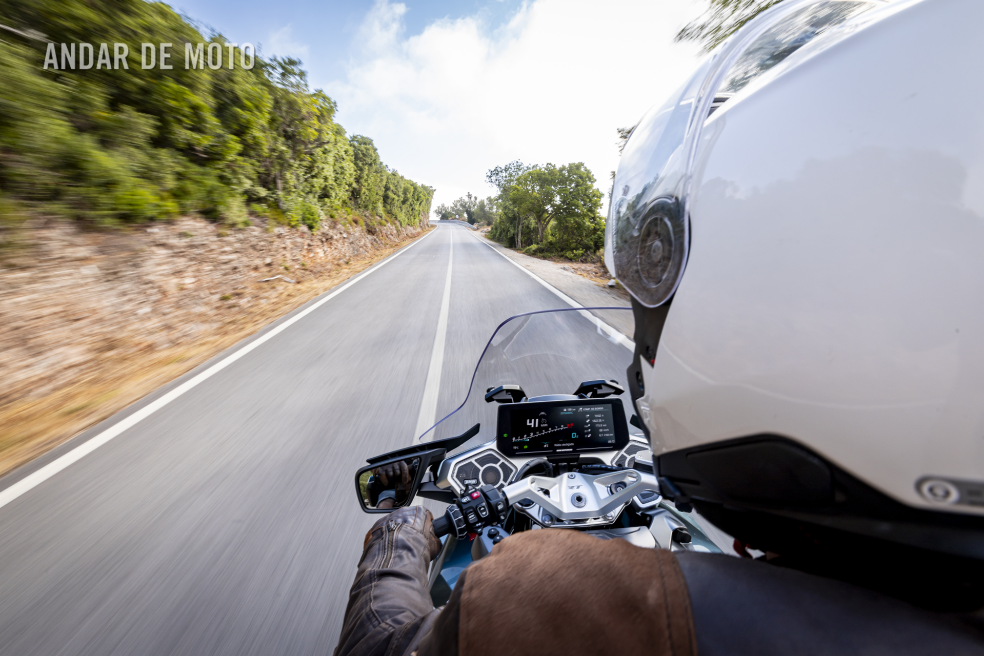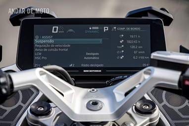 Nos percursos mais movimentados descobri a grande utilidade do Cruise Control Adaptativo, que permite ir confortavelmente atrás dos camiões, e nas filas de trânsito, a desfrutar a paisagem, e deixar a eletrónica fazer o seu trabalho. E com a caixa de velocidades em modo completamente automático, parece quase magia ver o sistema a mudar as relações de caixa, de acordo com a velocidade. E mesmo que o veículo da frente trave e páre, a BMW faz tudo automaticamente, incluindo travar, até chegar a uma velocidade de aproximadamente 15km/h, momento em que a moto fica, não em ponto morto, mas como se estivesse com a manete da embraiagem apertada, com a 1ª relação engrenada, até que se páre, ou que o veículo da frente acelere, ou se enrole o punho direito novamente. O sistema também prevê que, ao desligar o motor, a primeira velocidade fique engrenada, em posição de estacionamento.