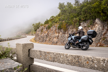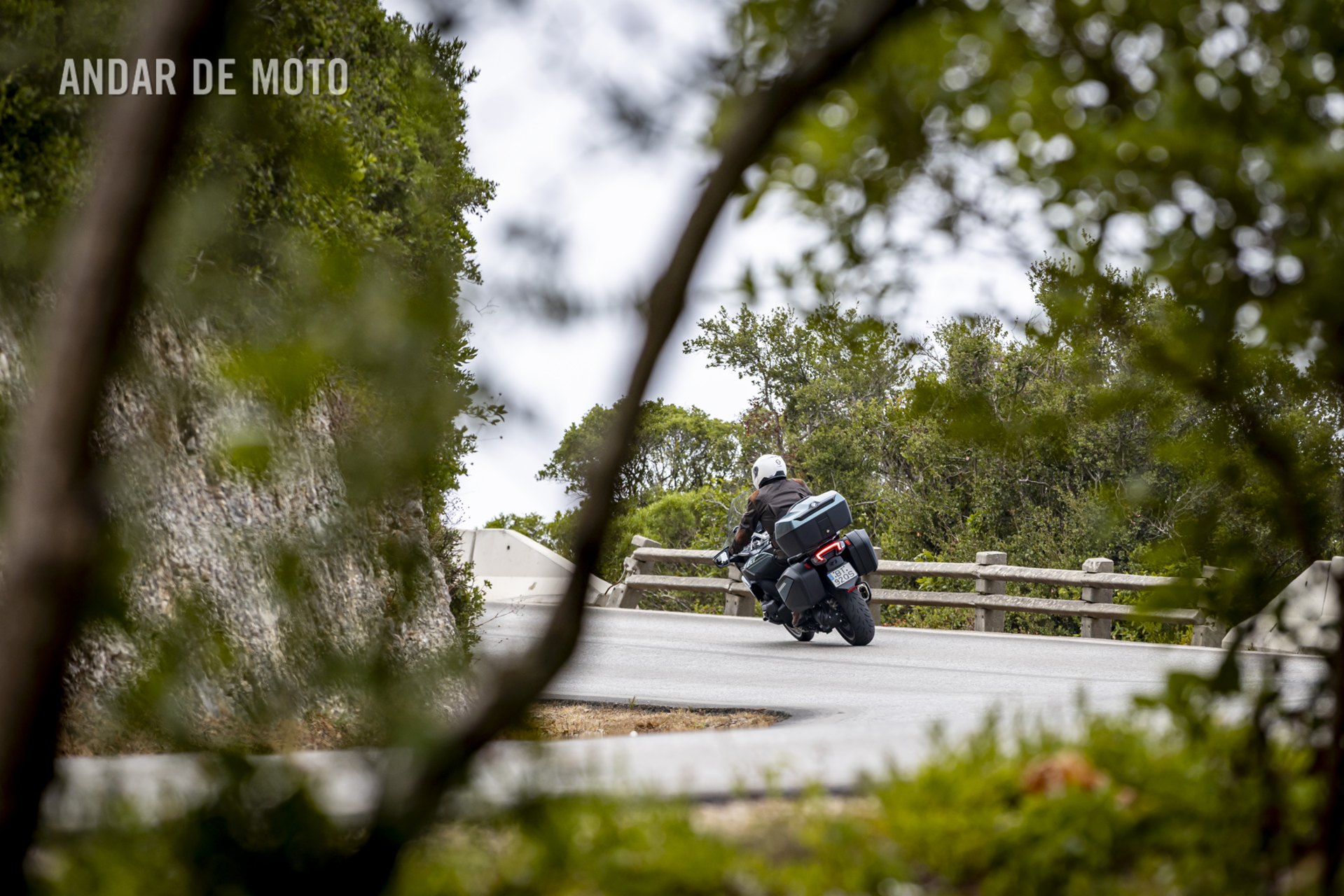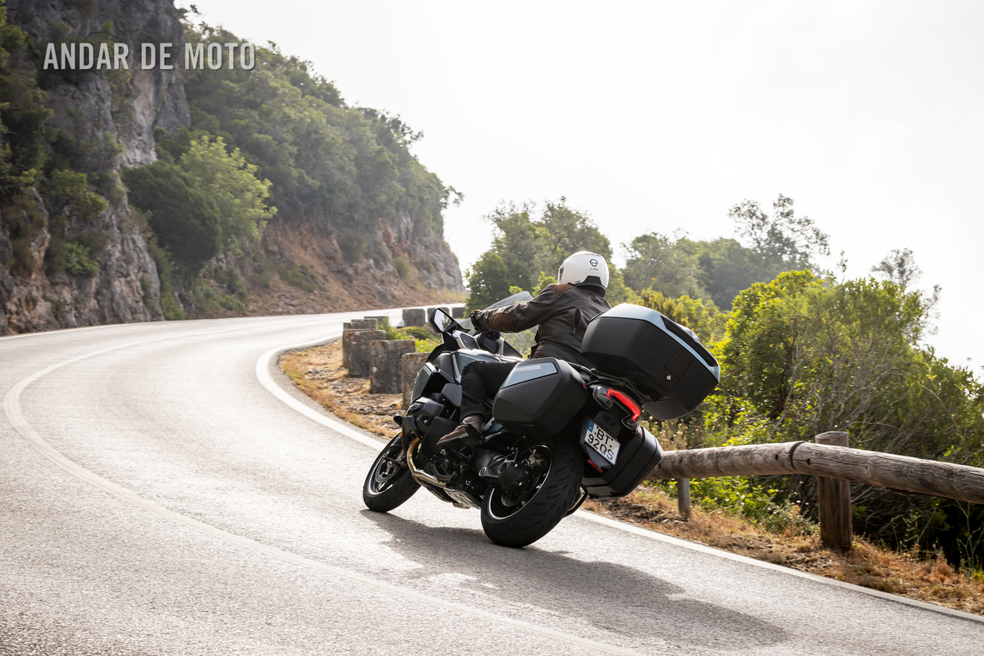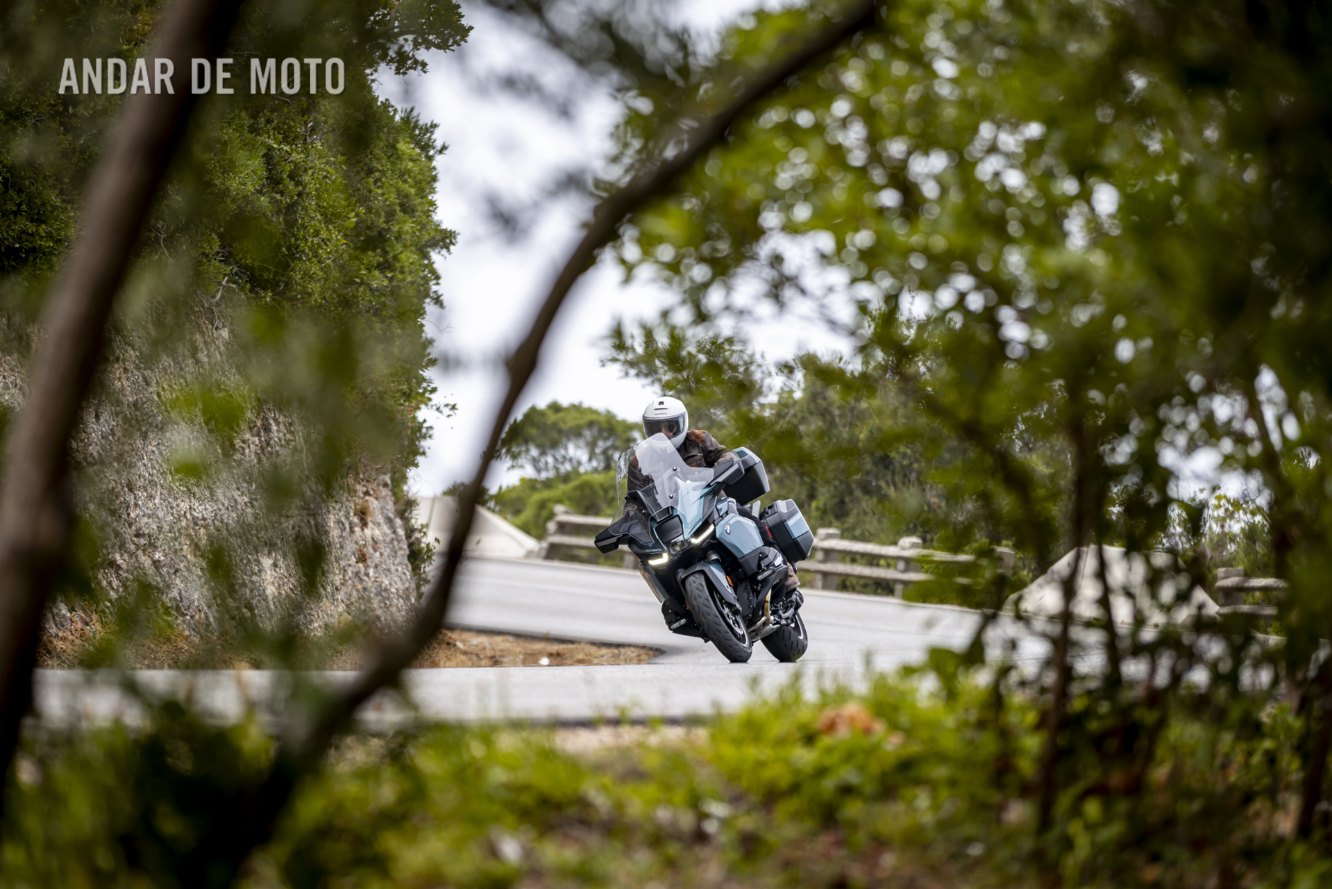 Nos percursos mais movimentados descobri a grande utilidade do Cruise Control Adaptativo, que permite ir confortavelmente atrás dos camiões, e nas filas de trânsito, a desfrutar a paisagem, e deixar a eletrónica fazer o seu trabalho. E com a caixa de velocidades em modo completamente automático, parece quase magia ver o sistema a mudar as relações de caixa, de acordo com a velocidade. E mesmo que o veículo da frente trave e páre, a BMW faz tudo automaticamente, incluindo travar, até chegar a uma velocidade de aproximadamente 15km/h, momento em que a moto fica, não em ponto morto, mas como se estivesse com a manete da embraiagem apertada, com a 1ª relação engrenada, até que se páre, ou que o veículo da frente acelere, ou se enrole o punho direito novamente. O sistema também prevê que, ao desligar o motor, a primeira velocidade fique engrenada, em posição de estacionamento.