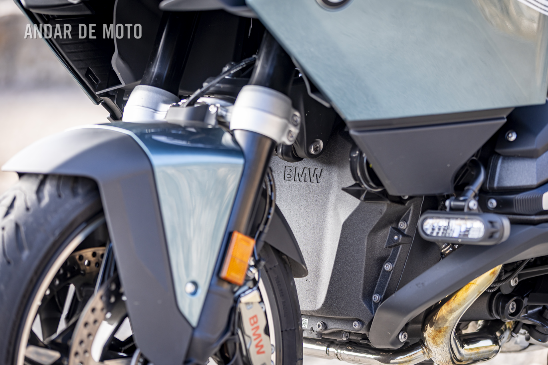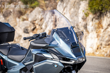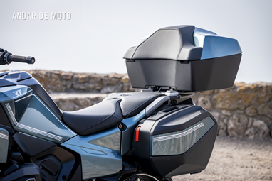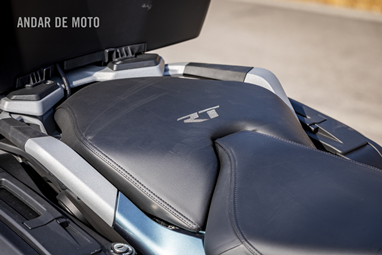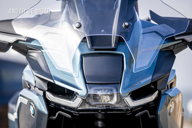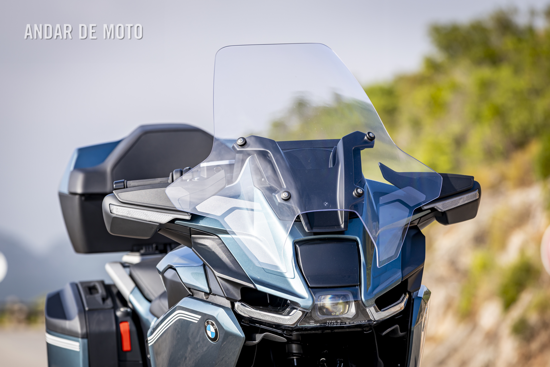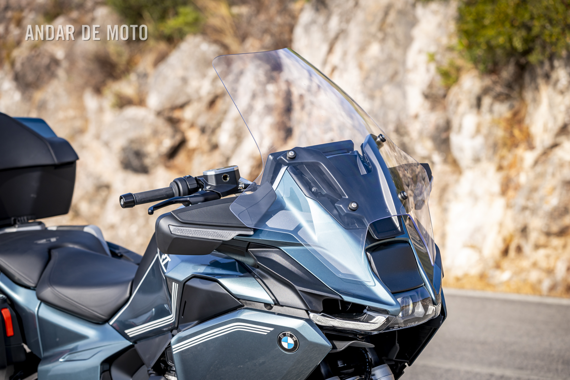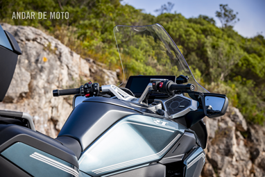 O pormenor do design foi ao ponto de criar defletores na parte inferior da carenagem para proteger os pés do motociclista, deixando-os mais secos e mais limpos em caso de chuva. Além disso, o substancial ecrã frontal com regulação elétrica em altura, também proporciona uma proteção realmente à prova de intempérie!