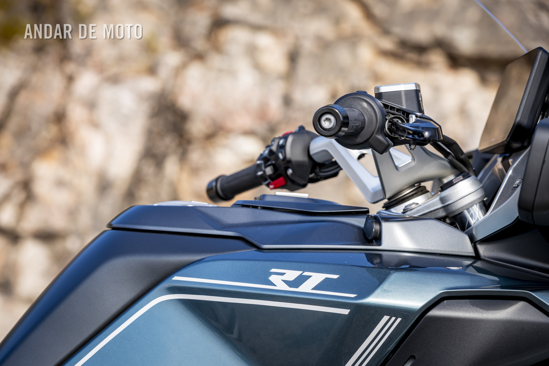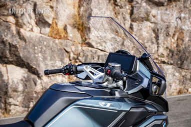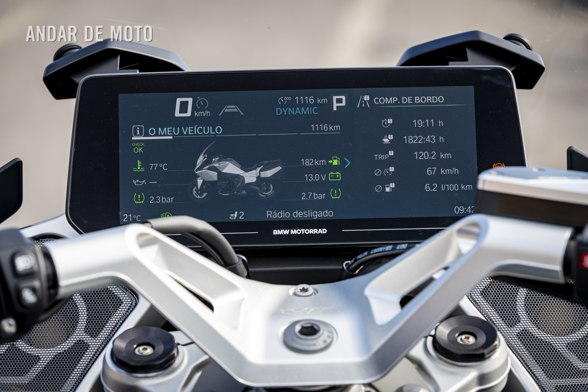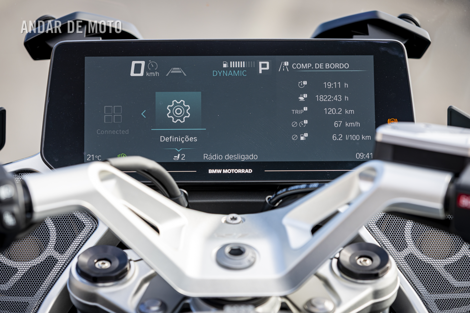 Em termos de assistência eletrónica à condução, a RT vem equipada com tudo o que a BMW Motorrad tem no seu arsenal, como unidade de medição de inércia, suspensão eletrónica, radar, farol adaptativo, malas com fechos elétricos automáticos, rádio e altofalantes e o já conhecido e invejável painel de instrumentos de 10 polegadas com integração de GPS.