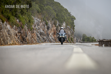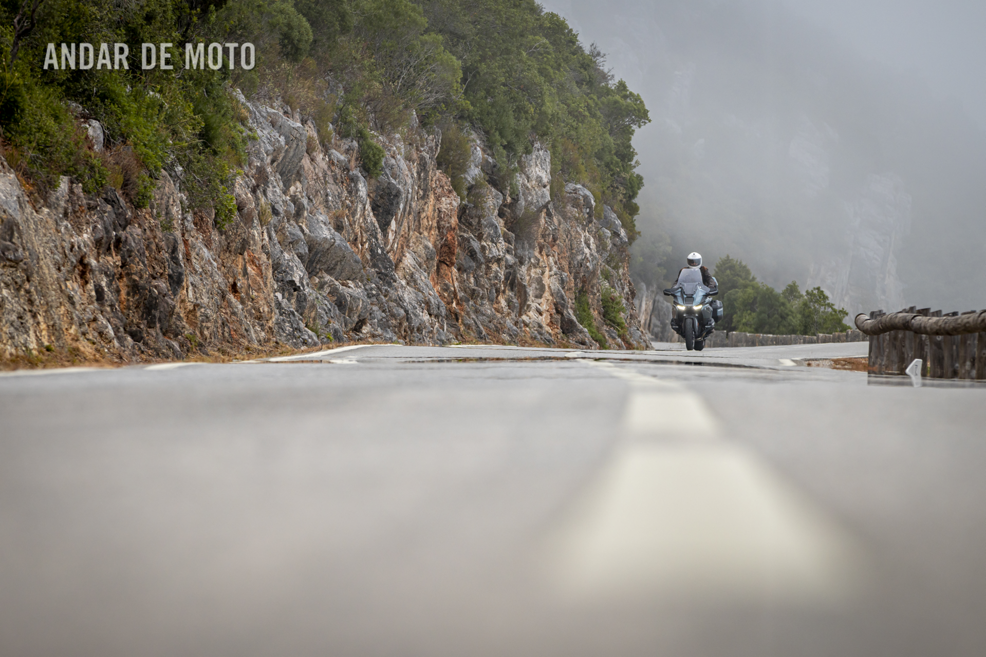 A caminho da sessão de fotos que ilustra este teste, desfrutei das primeiras curvas na Serra da Arrábida, numa manhã triste, enevoada, para fugir do inevitável trânsito do mês de agosto, sobretudo numa zona de praias. No entanto, aquele nascer do dia, sem trânsito praticamente nenhum, entre o mar escondido na bruma e as montanhas mesmo ali ao lado, o traçado da N10 tornou-se num verdadeiro parque de diversões e emoções.