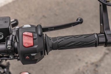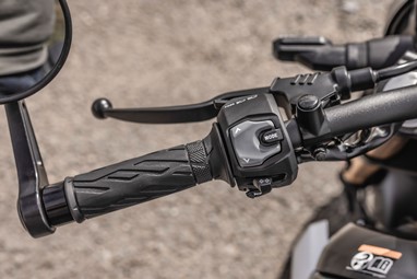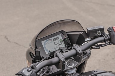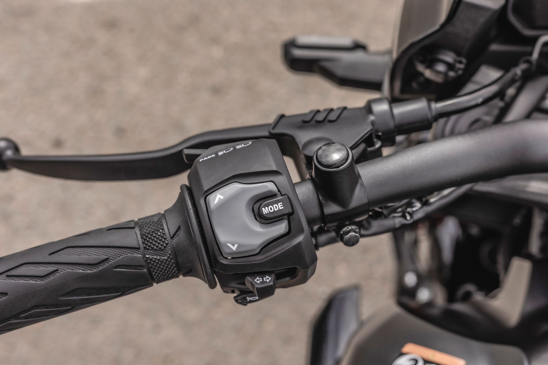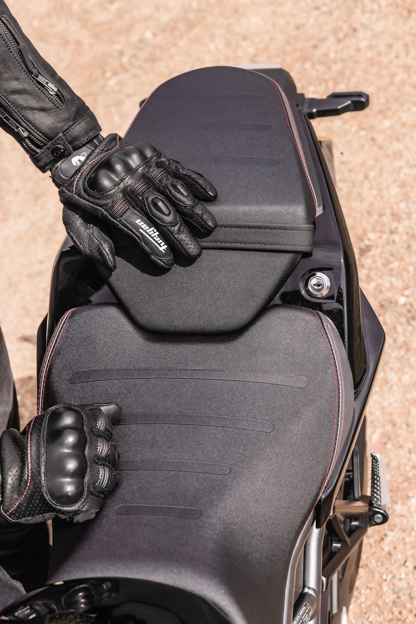 O depósito de combustível, com capacidade para 16,5 litros, apresenta formas esculpidas e um acabamento cuidado, emprestando charme ao desafogado posto de condução que beneficia de uma ergonomia muito bem conseguida, mesmo para os motociclistas de tamanho XL.
