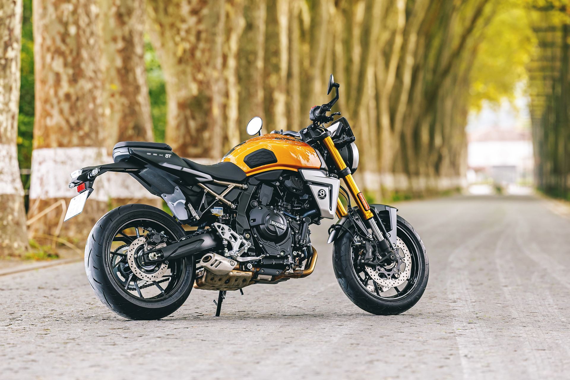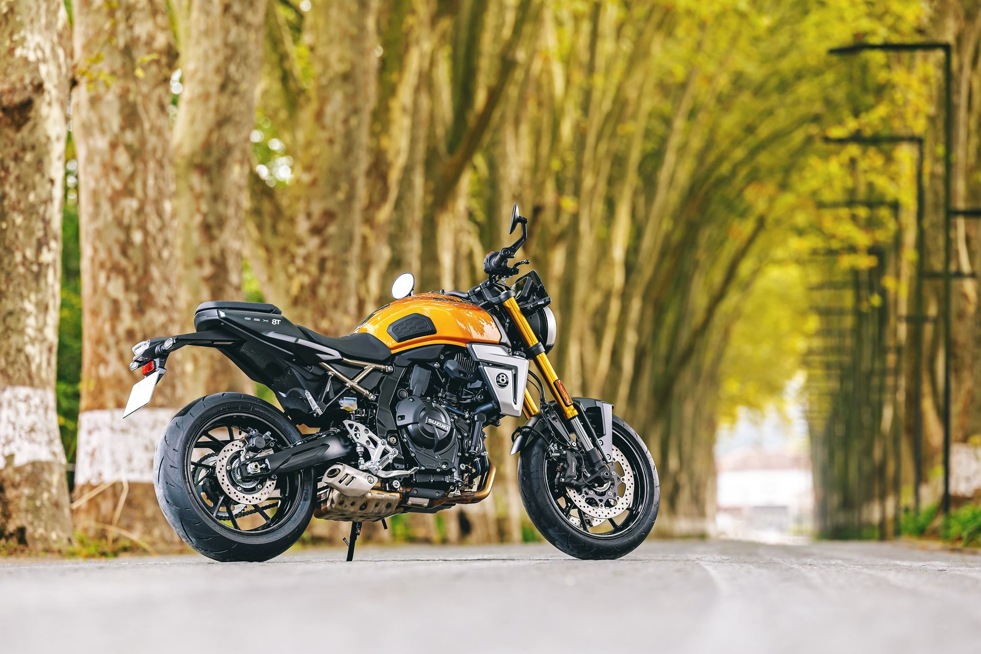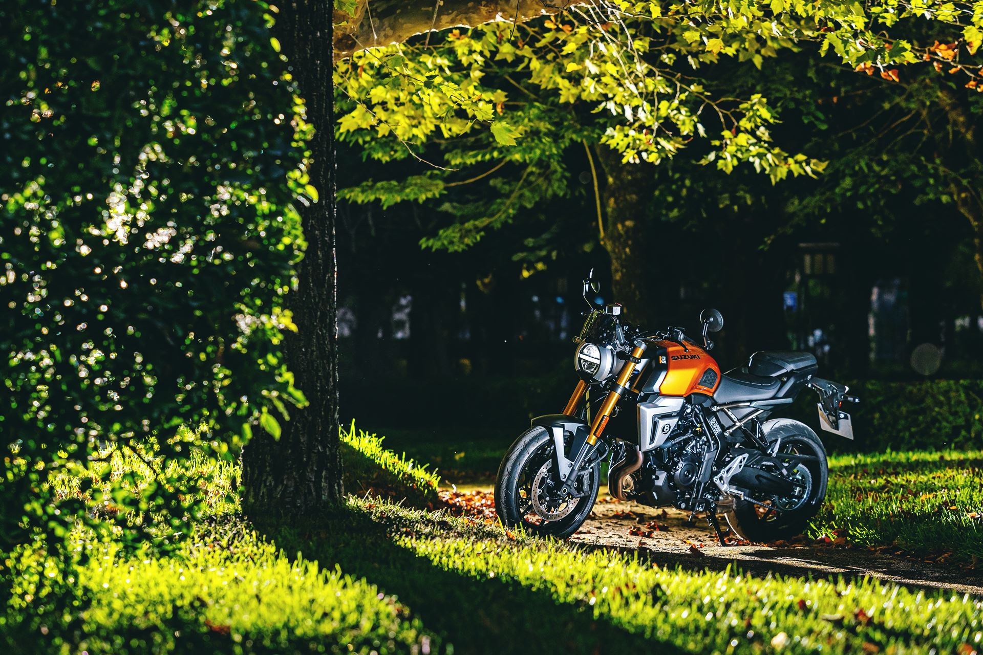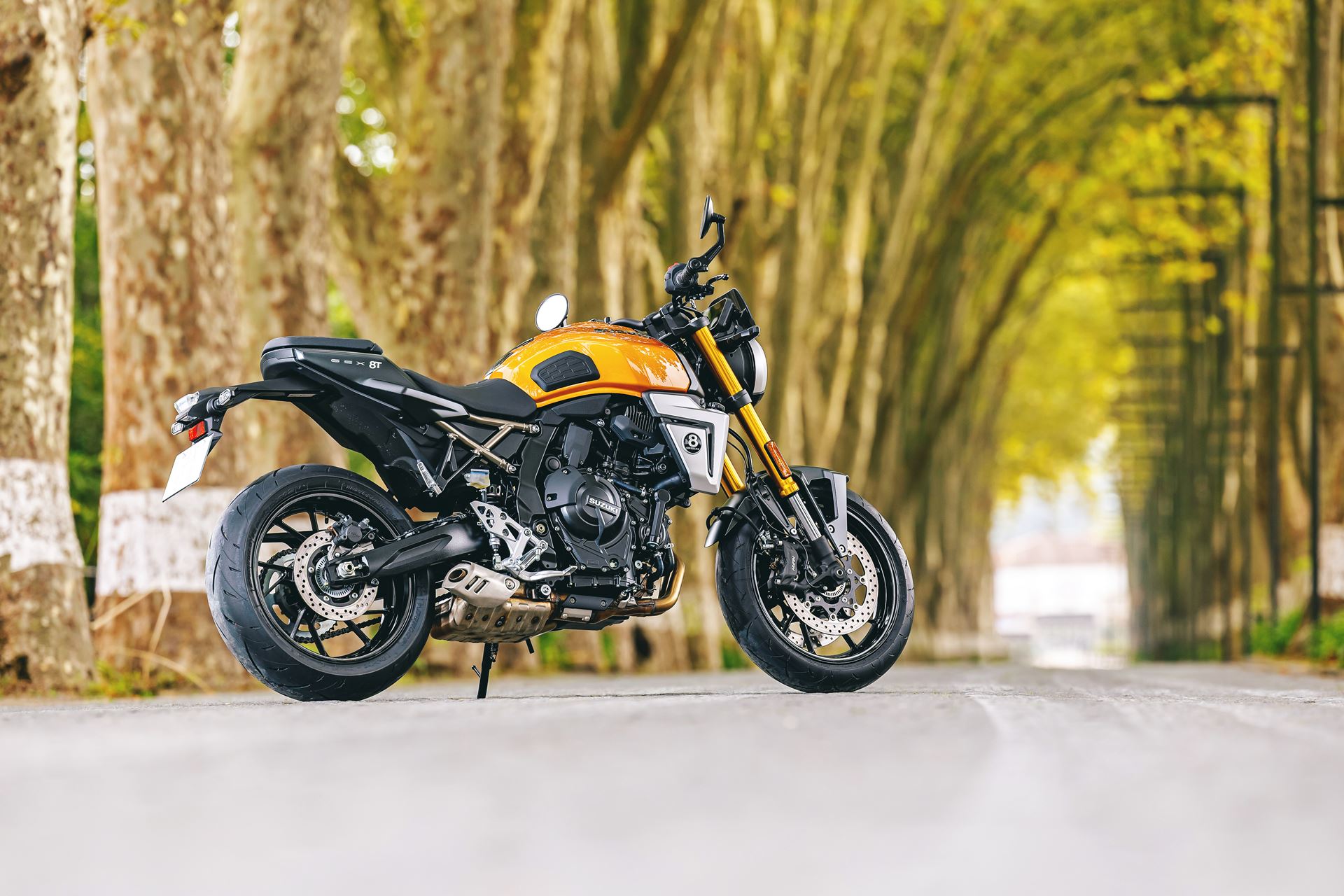 A GSX-8T remete para a T500 "Titan" dos anos 60, então uma naked de alto desempenho.