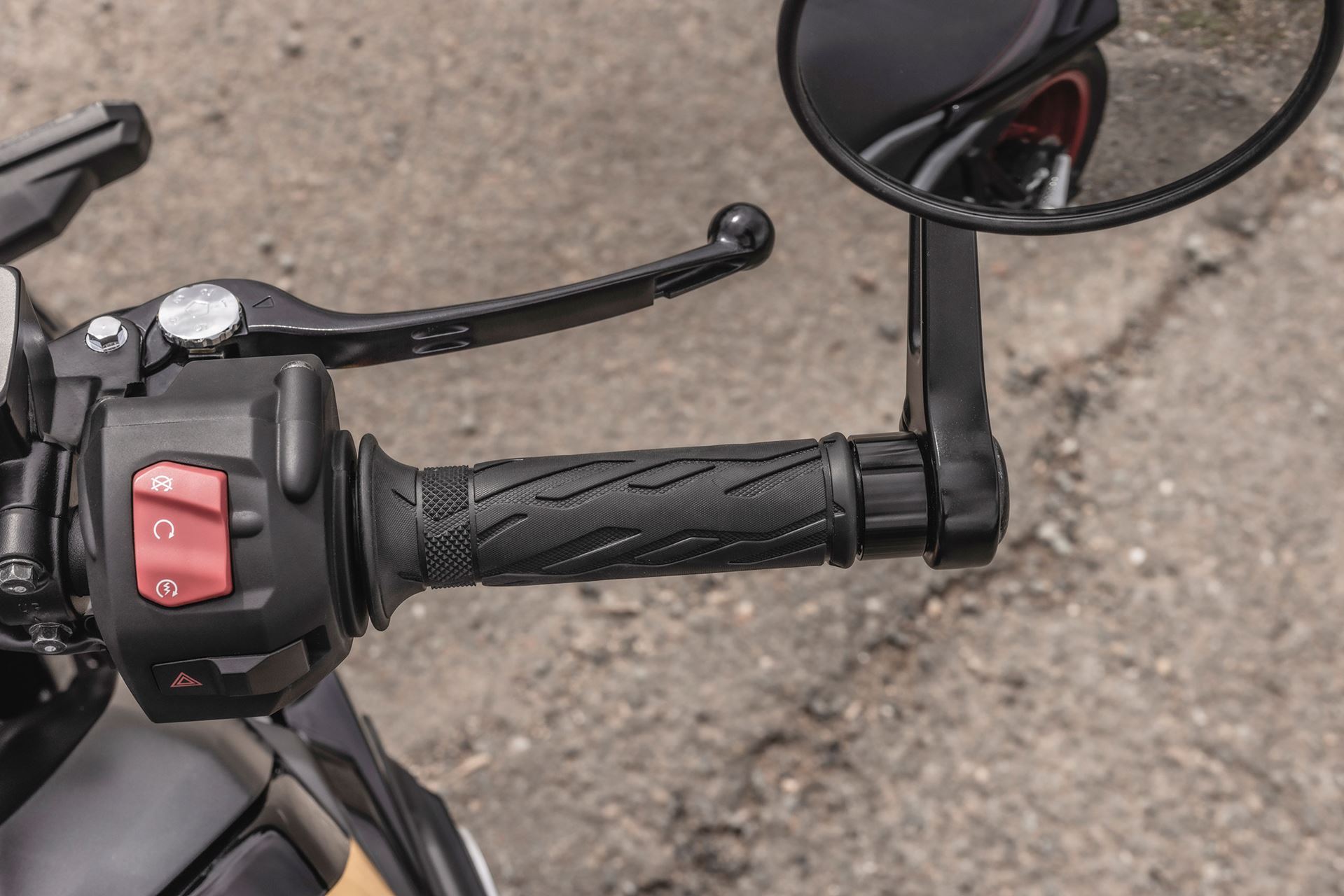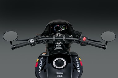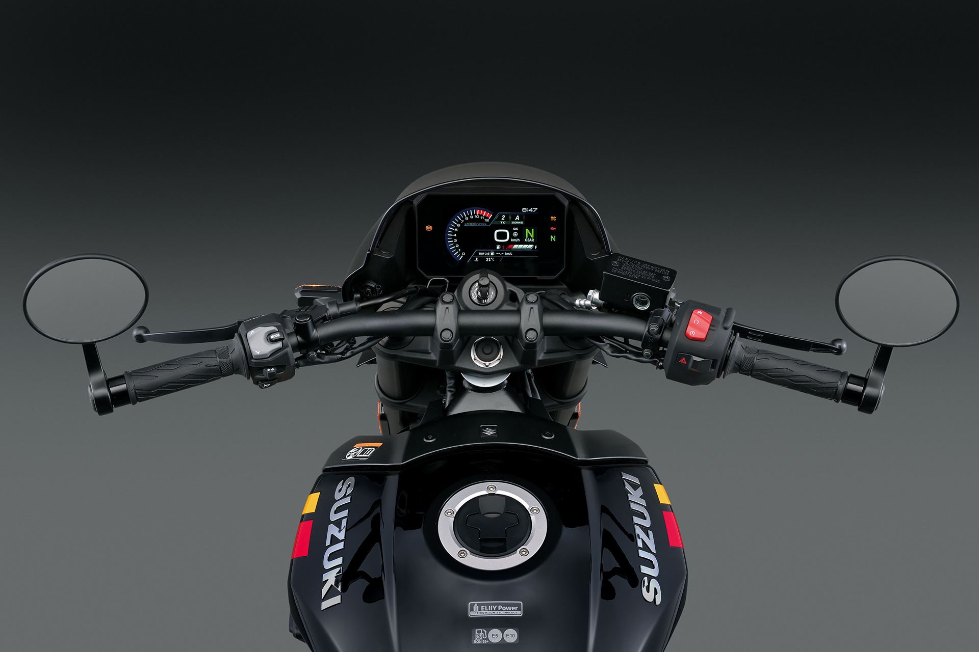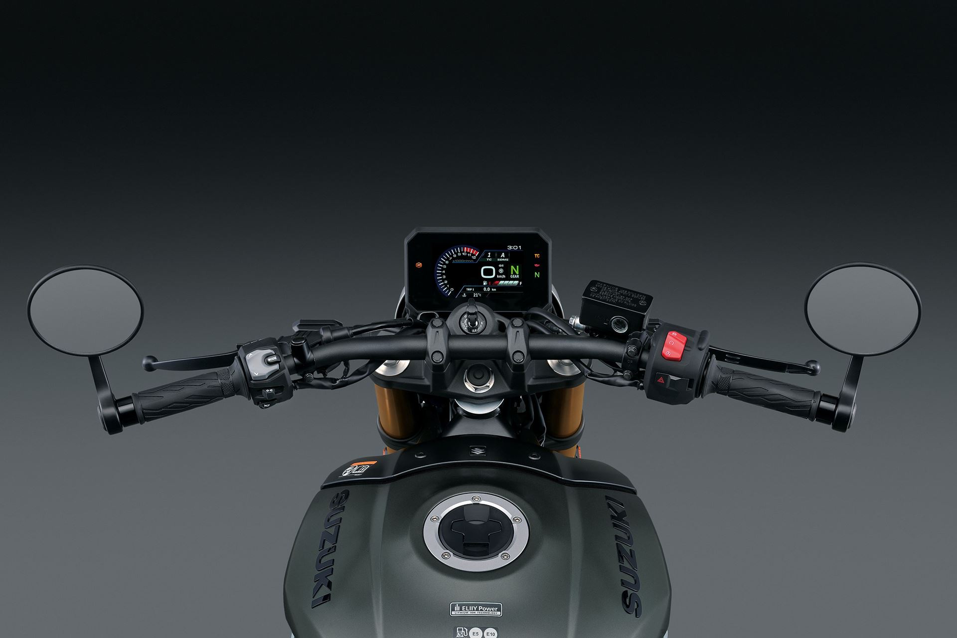 Os espelhos retrovisores nas extremidades do guiador são uma estreia na Suzuki, e foram alvo de grande preocupação de forma a garantirem um design refinado, mas também uma excelente visibilidade para a traseira, mesmo apesar da minha volumosa pessoa.