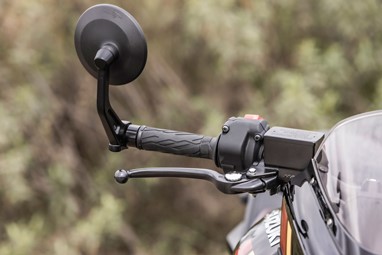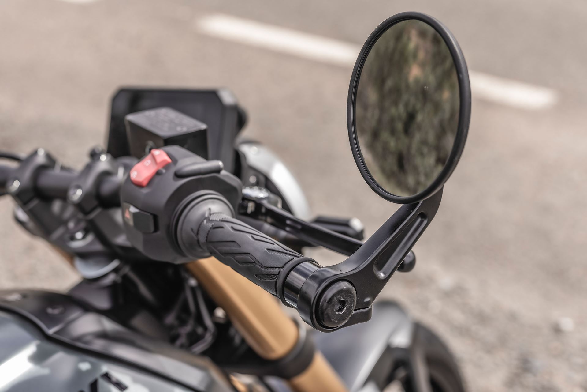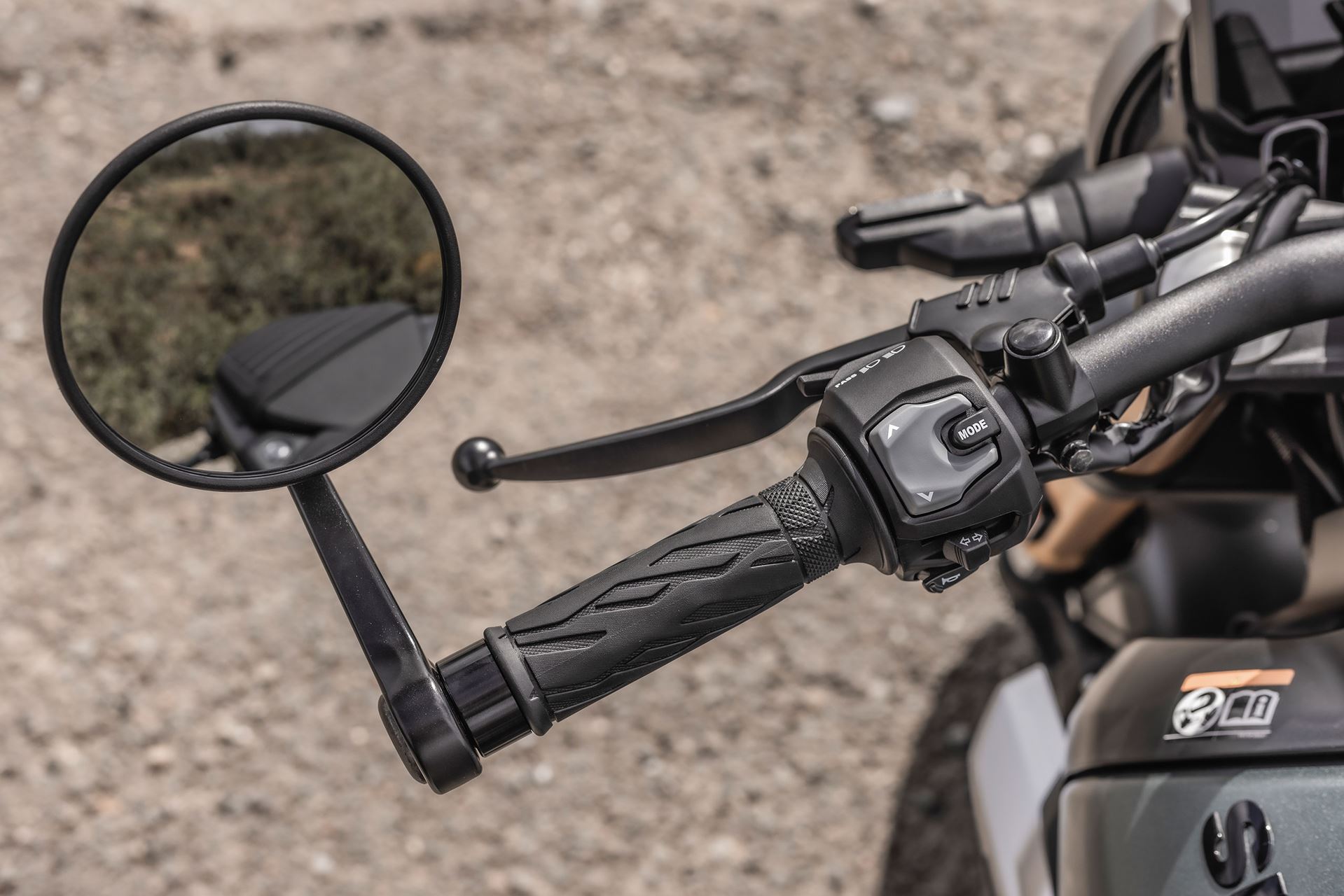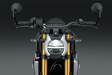 Os espelhos retrovisores nas extremidades do guiador são uma estreia na Suzuki, e foram alvo de grande preocupação de forma a garantirem um design refinado, mas também uma excelente visibilidade para a traseira, mesmo apesar da minha volumosa pessoa.