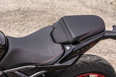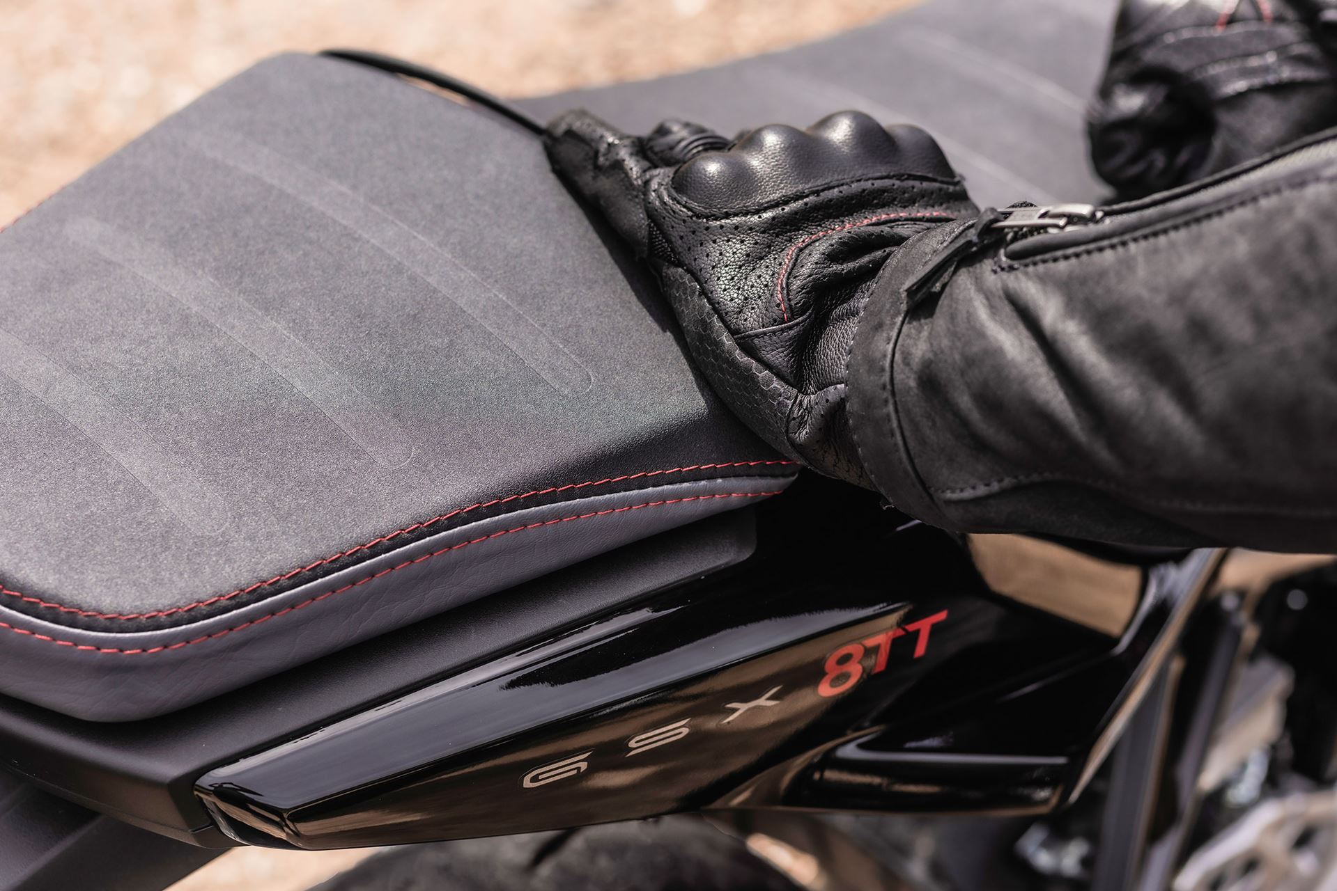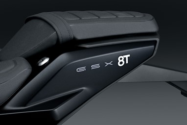 O assento exclusivo da GSX-8T apresenta um design canelado com espuma de alta densidade, enquanto o da GSX-8TT inclui costuras decorativas e um perfil desportivo, com o assento do passageiro a poder ser substituído por uma peça rígida que confere um aspeto mais desportivo, e que é perfeitamente legal pois a TT tem homologação para 1+1 passageiro, facto que lhe permite circular sem o assento traseiro. Apesar de ligeiramente mais baixo, o almofadado do assento não se revela desconfortável.