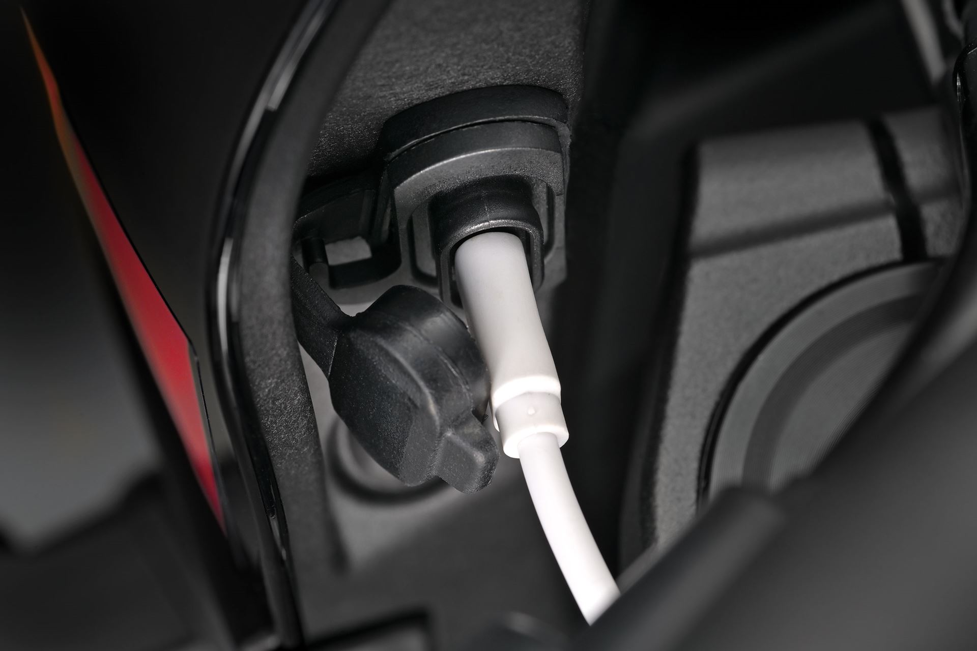 No entanto a eletrónica não se faz sentir e as diversas configurações são muito fáceis de selecionar. Uma tomada USB Tipo C, integrada no design, garante carregamento rápido de acessórios como o telefone ou um GPS.