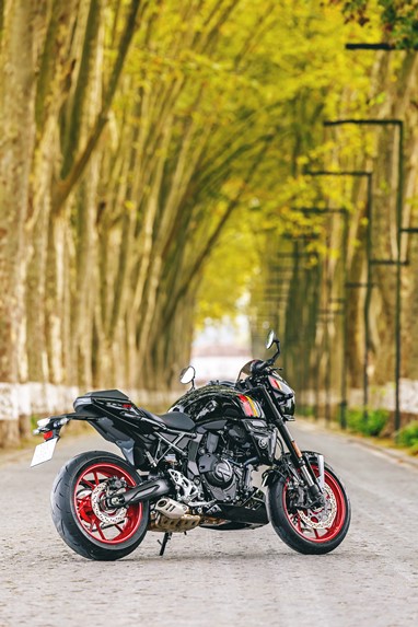 No entanto, tenho que admitir que foi a 8TT que mais me agradou, pela pequena carenagem frontal que ajuda a enfrentar as maiores tiradas além de lhe conferir uma personalidade mais marcante, e especificamente a verde, ou Pearl Mat Shadow Green com jantes em dourado, como é definida de fábrica, aquela que me conquistou pela sua elegância, contrastante com a agressividade da opção negra ou Glass Sparkle Black.