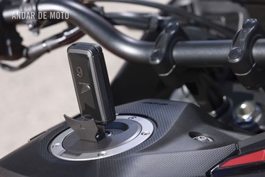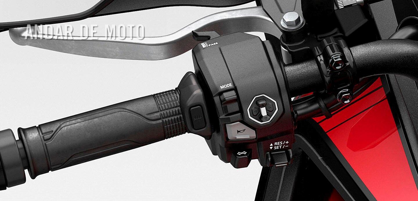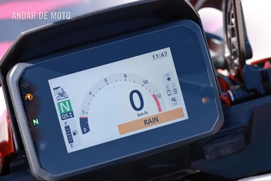 Num menu bastante lógico, exibido no ecrã TFT de cinco polegadas com conectividade para smartphones via aplicação Honda RoadSync, navegável através do novo interface simplificado que também está instalado no punho esquerdo da Hornet 1000, é ainda possível ajustar a pré-carga do amortecedor traseiro consoante o peso que se carrega, assim como todos os parâmetros do motor e suspensão, numa área “User” que permite a cada utilizador definir a sua preferência para cada um dos parâmetros.