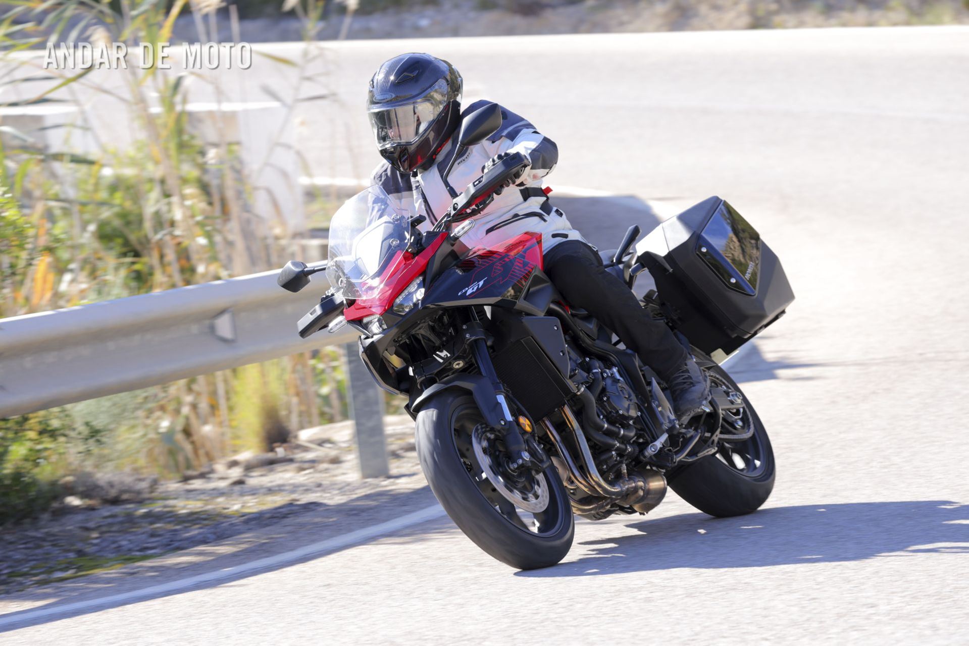 Mal me sentei aos seus comandos e arranquei pela primeira vez, parecia que já a conhecia, tal a facilidade com que a “GT” se deixa levar. O amplo guiador proporciona uma atitude de domínio, os comandos são leves, a direção é intuitiva, o painel de instrumentos é legível e de fácil leitura, a travagem é potente e a visibilidade é grande, sobretudo para a retaguarda, graças aos espelhos retrovisores bem posicionados.