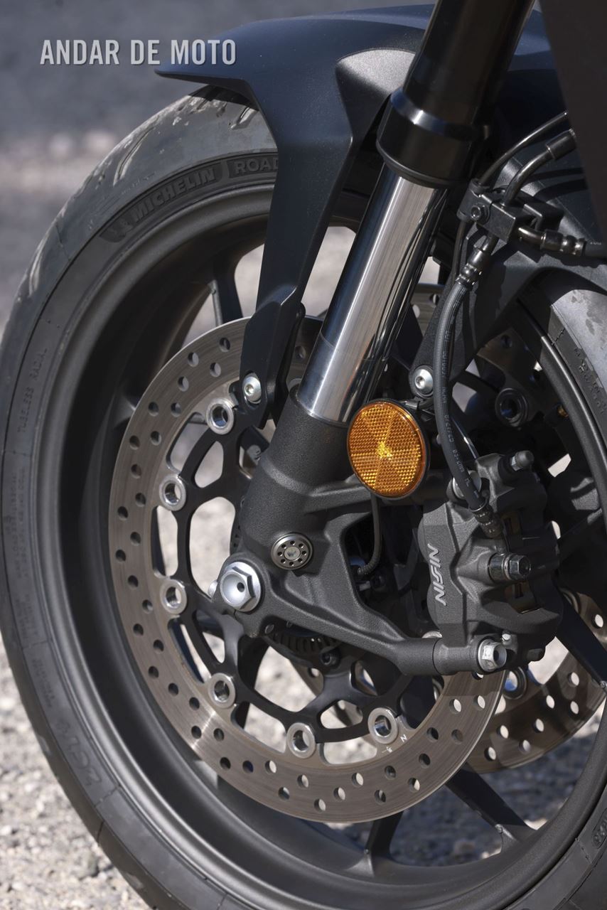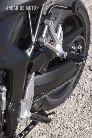 Também a caixa de seis velocidades é incrivelmente suave, permitindo que o quickshifter funcione na perfeição, em ambos os sentidos e na passagem de todas as relações, permitindo até exageros nas reduções, que são imediatamente compensados pela intervenção da embraiagem deslizante. A previsibilidade e consistência da travagem, a facilidade de inserção em curva e a estabilidade que exibe mesmo quando o ritmo de condução passa para lá do responsável, são referenciais.
