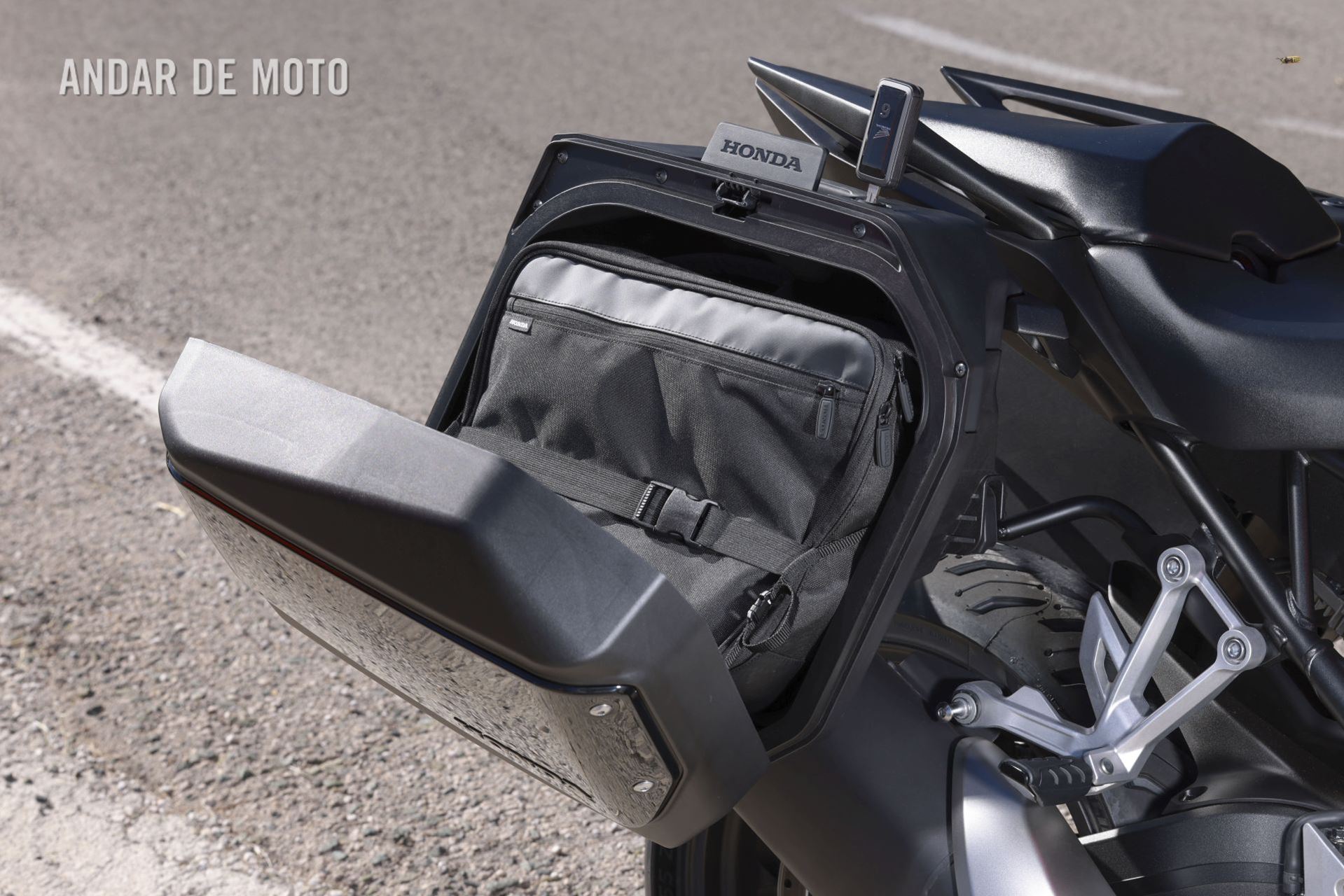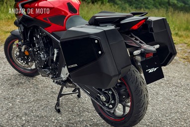 As malas laterais, com capacidades de 37 litros na esquerda e 28 na direita foram concebidas de forma a não ultrapassarem a largura do guiador, apesar de a do lado esquerdo ter capacidade para receber um bom capacete integral ou modular. Como aspeto negativo o facto de, à semelhança do depósito de combustível, ser necessário usar a chave para proceder à sua abertura, já que a Honda equipou a ignição com o sistema “sem chave”.