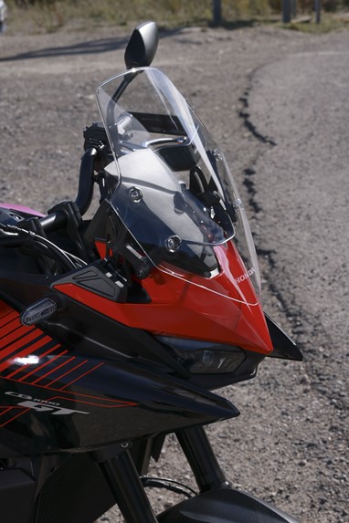 A carenagem frontal, desenvolvida com recurso a Dinâmica de Fluidos Computacional (CFD) oferece uma excelente proteção aerodinâmica sem comprometer a agilidade. O pára-brisas é regulável em cinco posições, mesmo em andamento, com a mão esquerda, através de um novo e prático sistema, numa amplitude de 8 centímetros. E na gama de acessórios disponível existe um ecrã mais alto e apêndices aerodinâmicos que aumentam ainda mais a proteção contra a intempérie.
