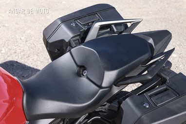 Graças a um substancial reforço do sub-quadro traseiro, o passageiro também beneficia de espaço suficiente, com um amplo assento independente e elevado e pegas de mãos muito bem posicionadas. Além disso, o novo sub-quadro permite a instalação das malas laterais fornecidas de série, e de uma eventual top-case.
