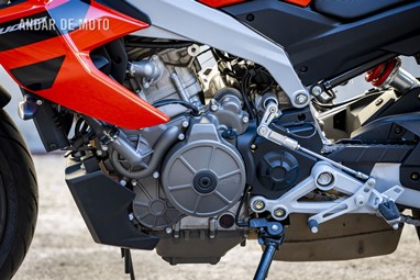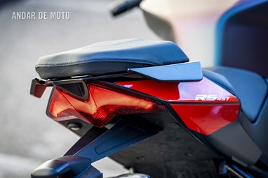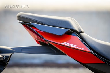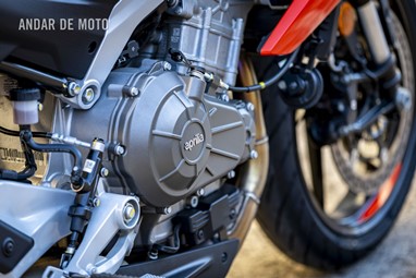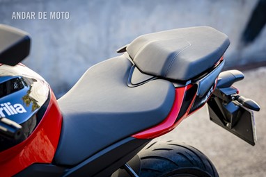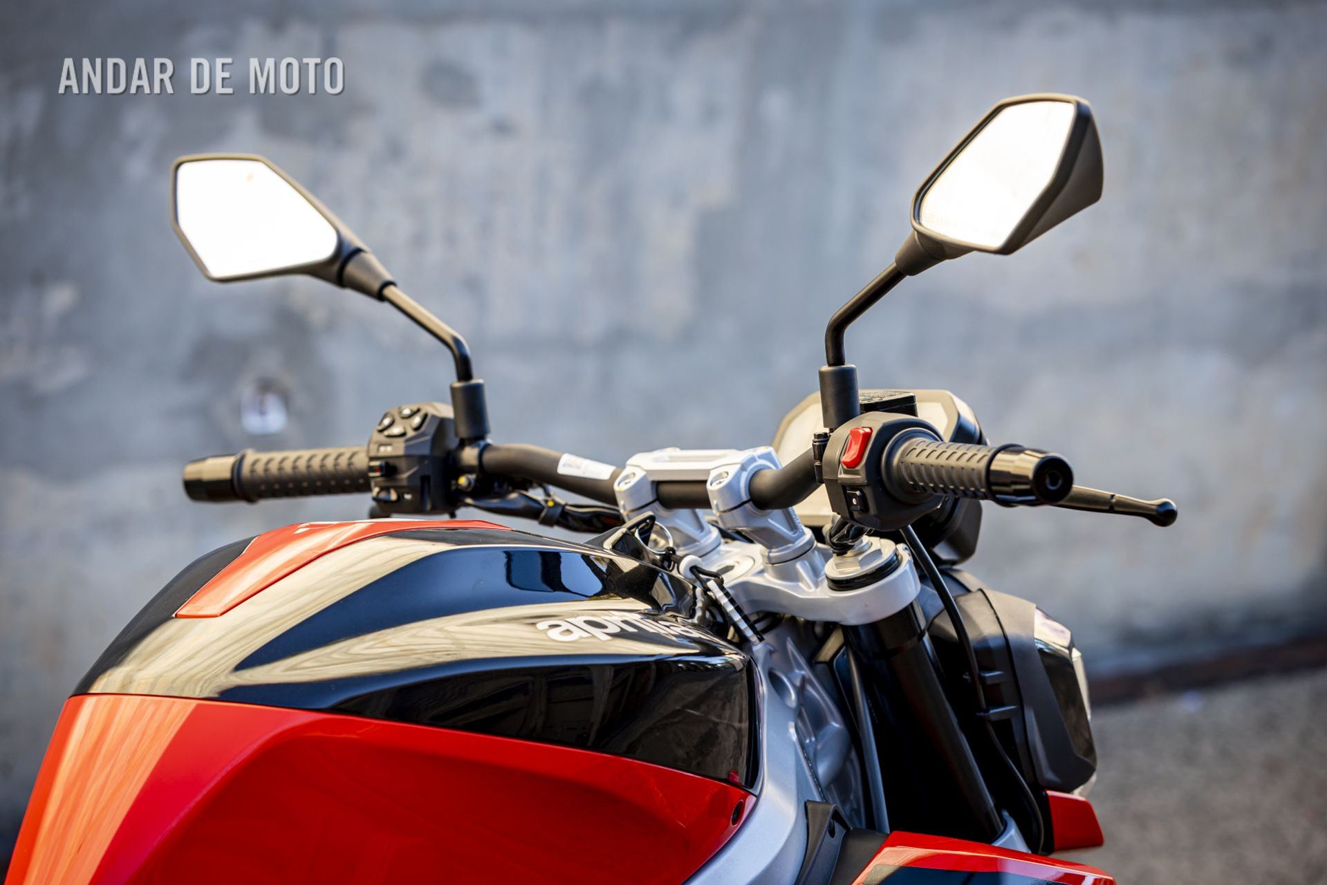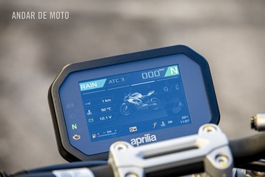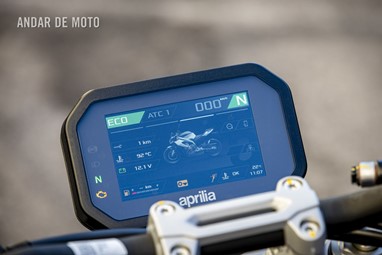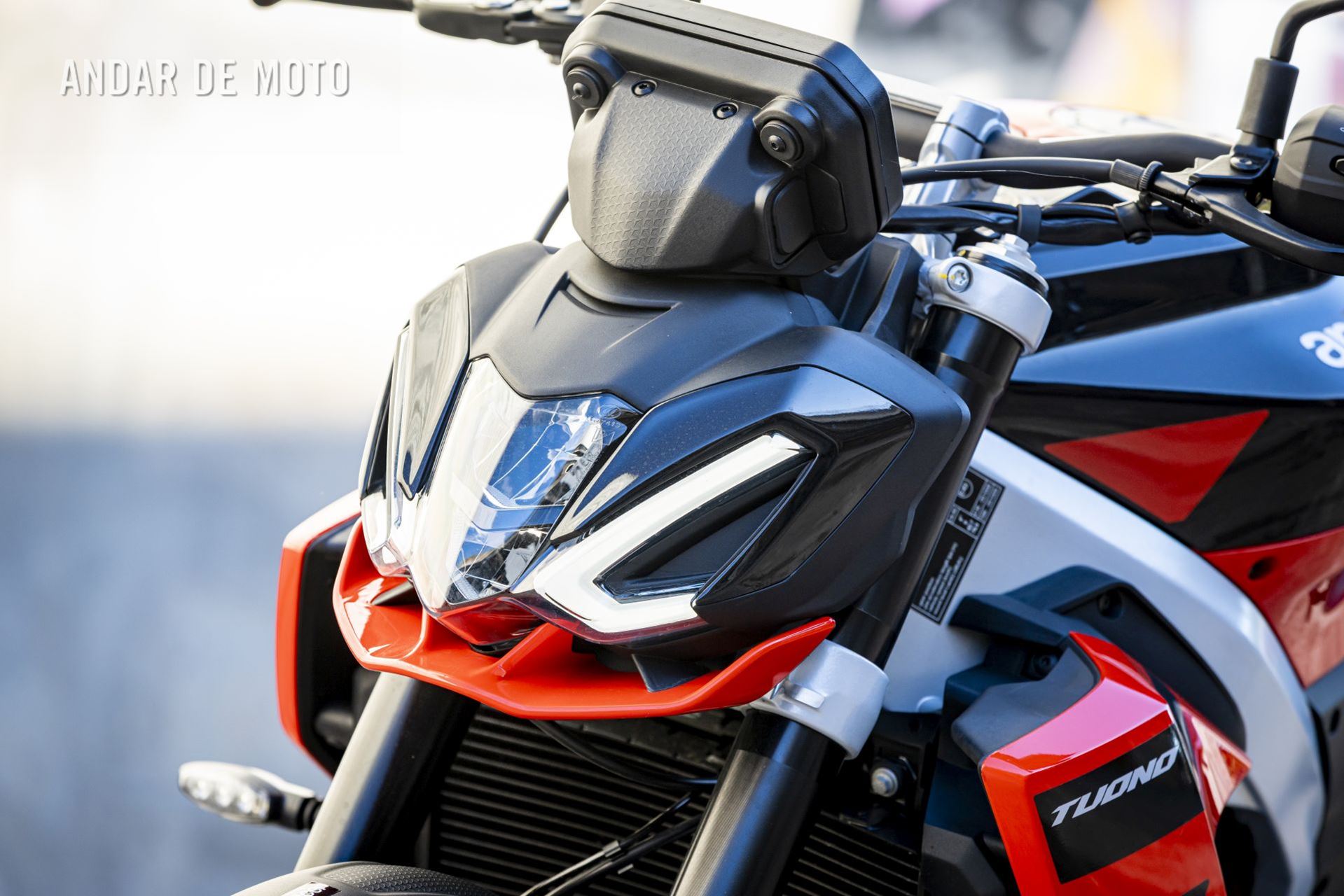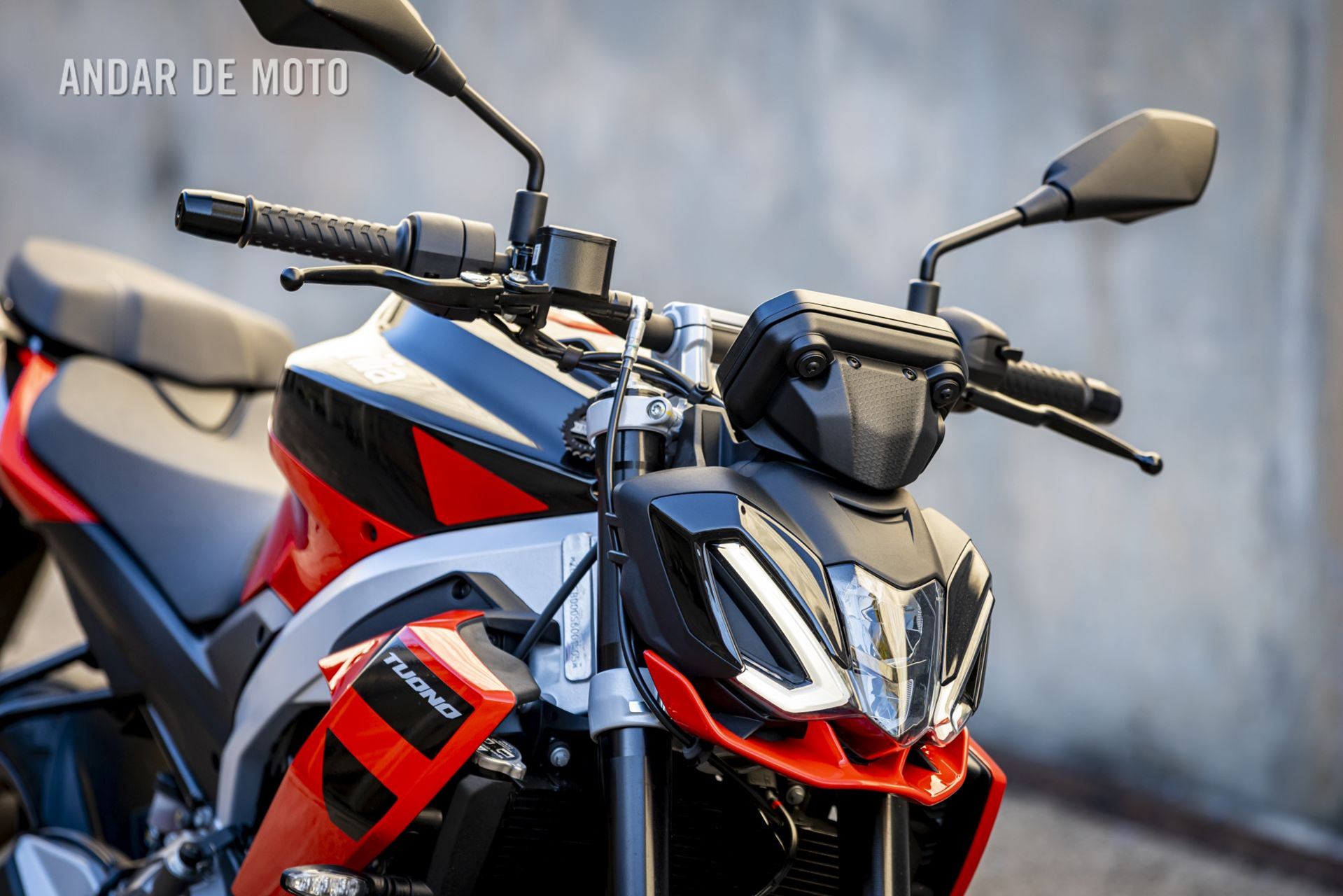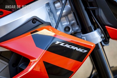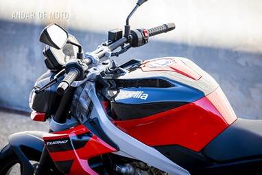Mas o que mais o fascina é a forma como a forquilha KYB com jarras de 41 mm e o monoamortecedor traseiro ajustável, absorvem as irregularidades da estrada, garantindo estabilidade e confiança. Mesmo nas travagens mais exigentes, os discos de 320 mm com pinças radiais ByBre (do grupo Brembo) transmitem-lhe uma sensação de controlo absoluto. A Tuono é fiel, capaz de transformar cada deslocação banal numa experiência prazerosa que lhe poupa rores de horas no trânsito.