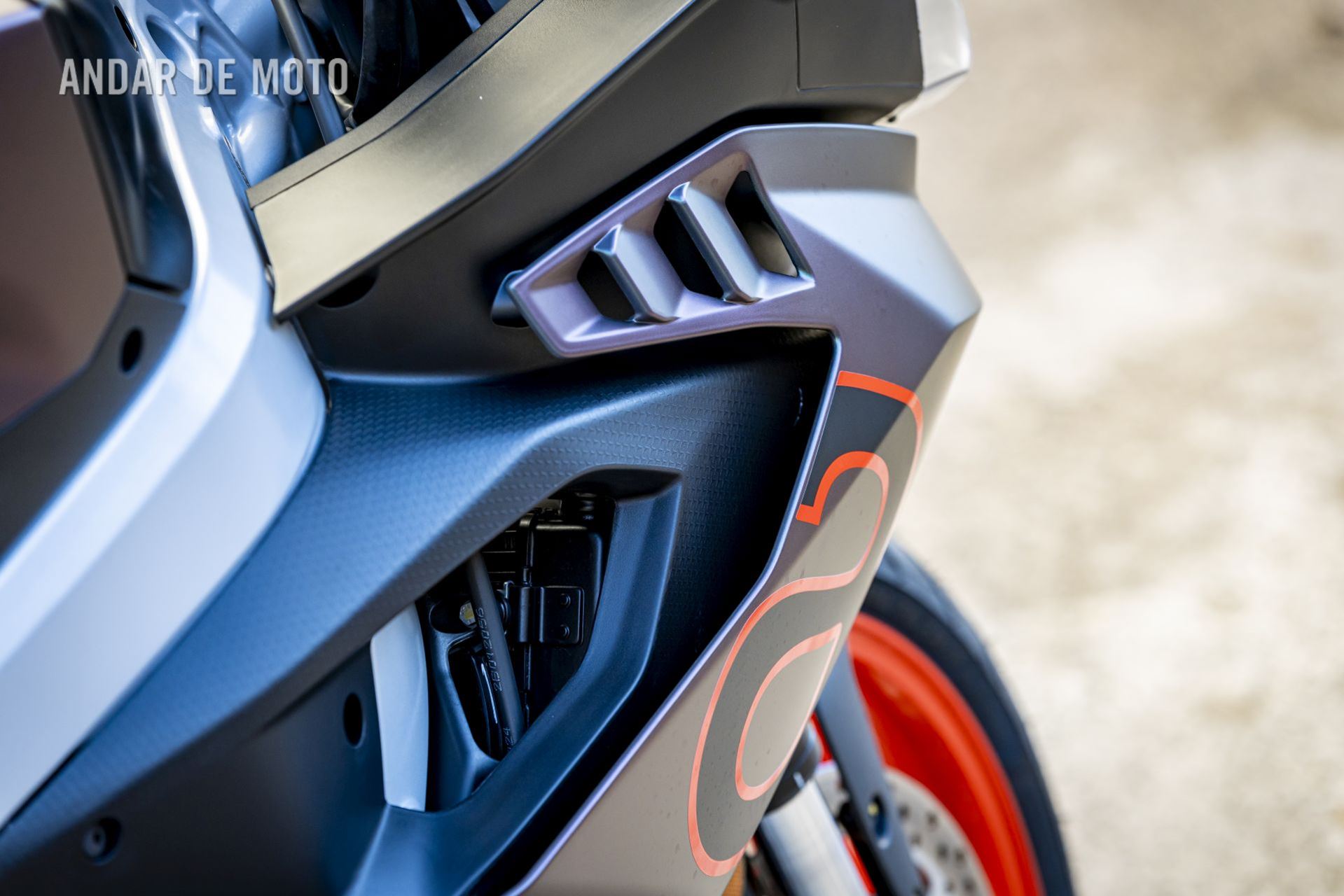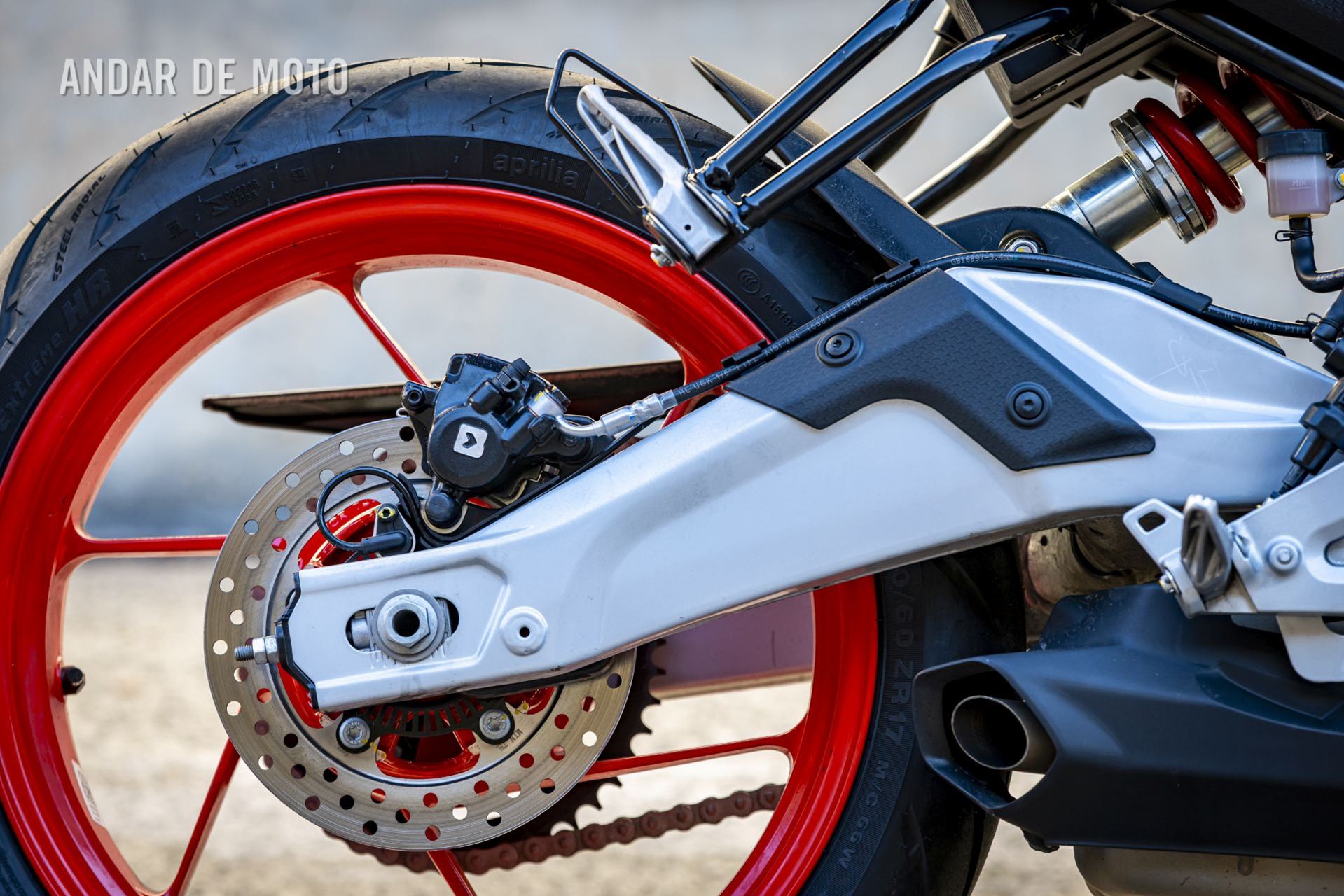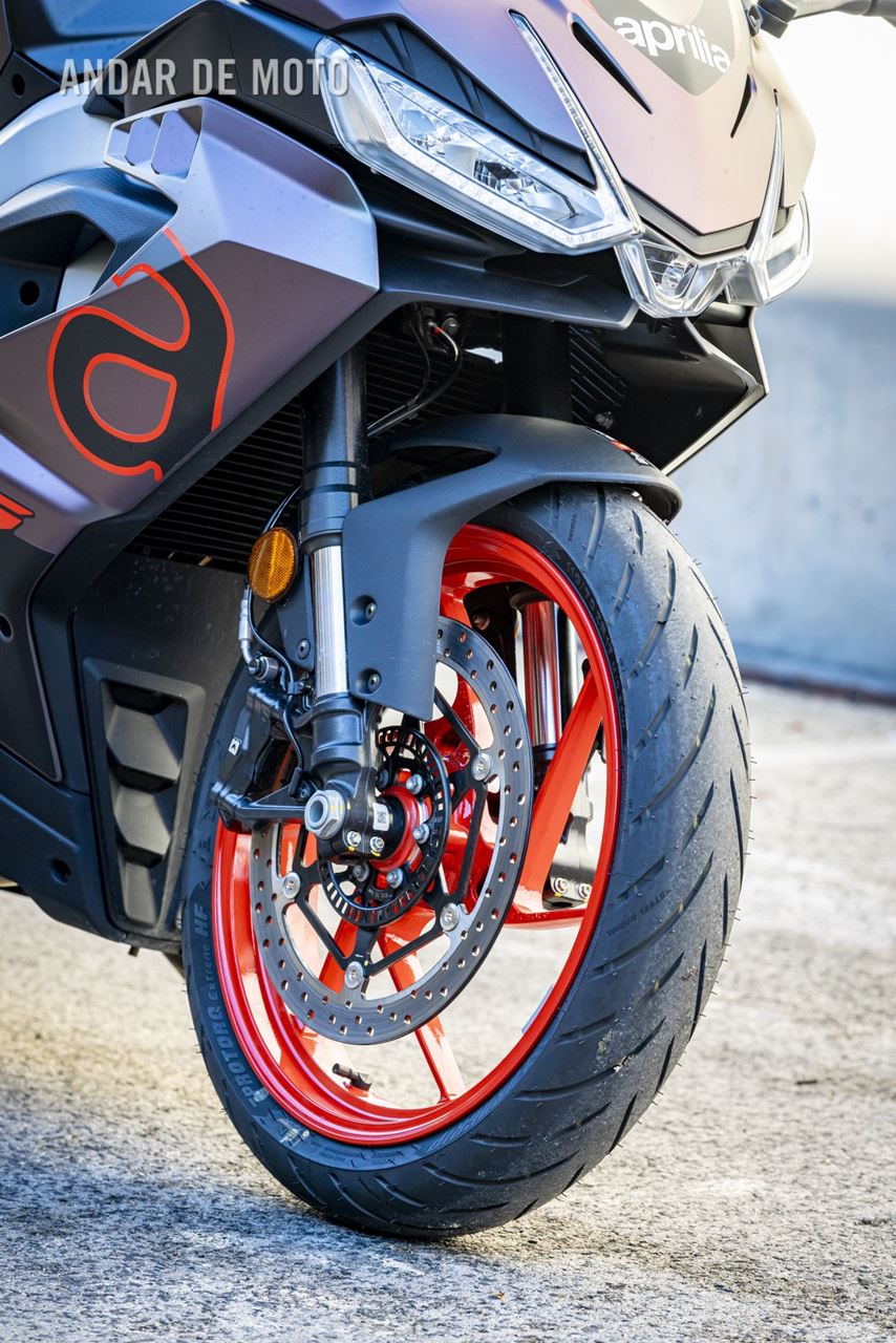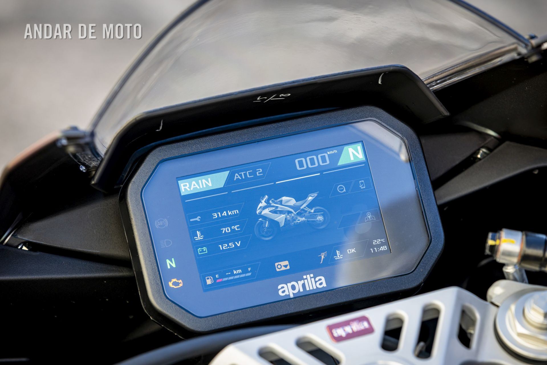 Mas o que mais o fascina é a forma como a forquilha KYB com jarras de 41 mm e o monoamortecedor traseiro ajustável, absorvem as irregularidades da estrada, garantindo estabilidade e confiança. Mesmo nas travagens mais exigentes, os discos de 320 mm com pinças radiais ByBre (do grupo Brembo) transmitem-lhe uma sensação de controlo absoluto. A Tuono é fiel, capaz de transformar cada deslocação banal numa experiência prazerosa que lhe poupa rores de horas no trânsito.