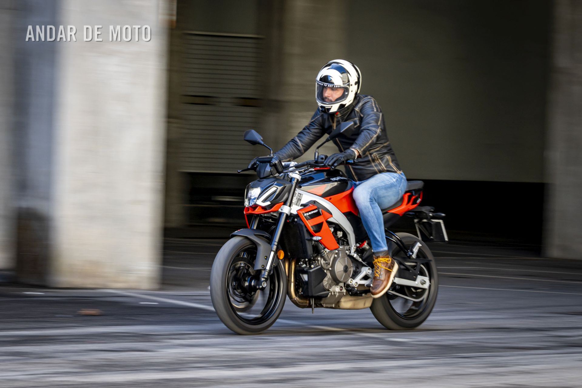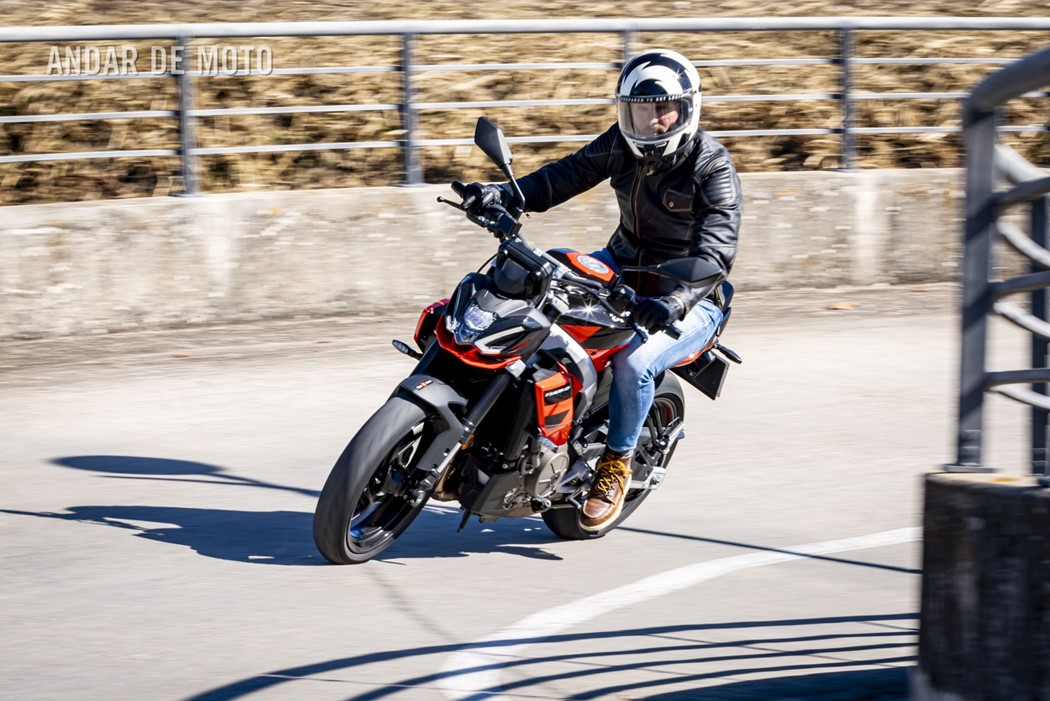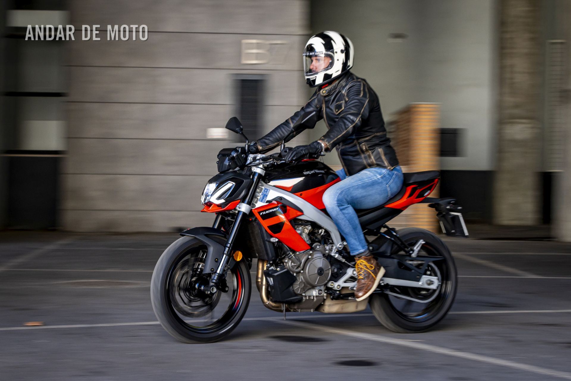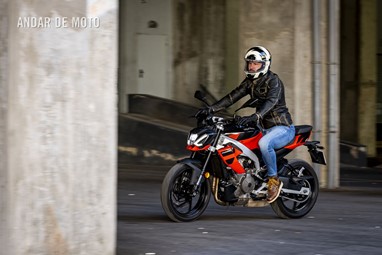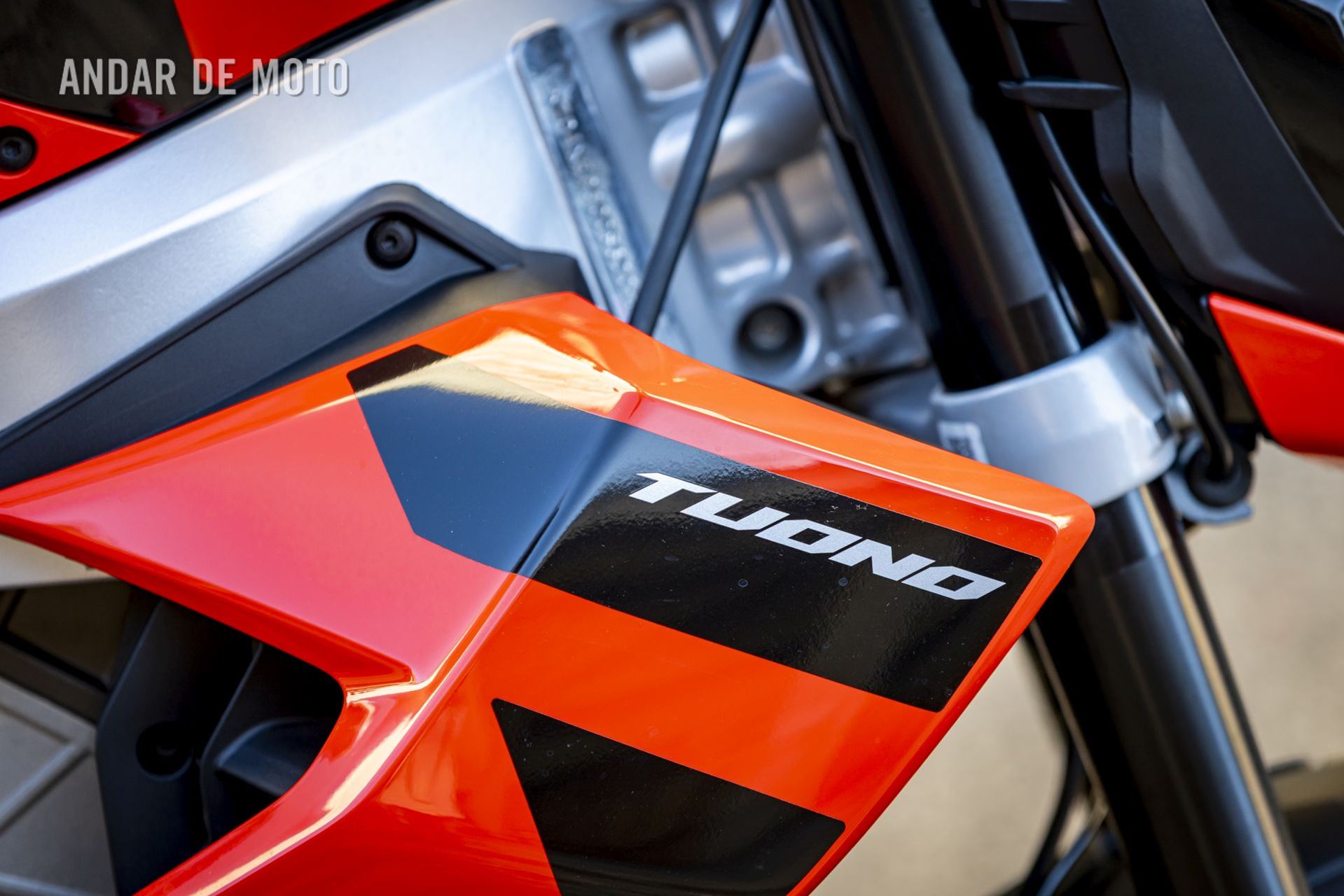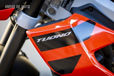 Ele aprecia a postura descontraída da Tuono que, graças ao guiador mais largo, revela a sua agilidade em estrada de curvas. Graças à pequena semi-carenagem frontal que mantém a imagem de família da Aprilia, interpretada de maneira inovadora, com um pequeno spoiler inferior, ainda beneficia de consumos que raramente ultrapassam os 4 litros aos 100 km, o que lhe permite enfrentar quilómetros sem esforço.