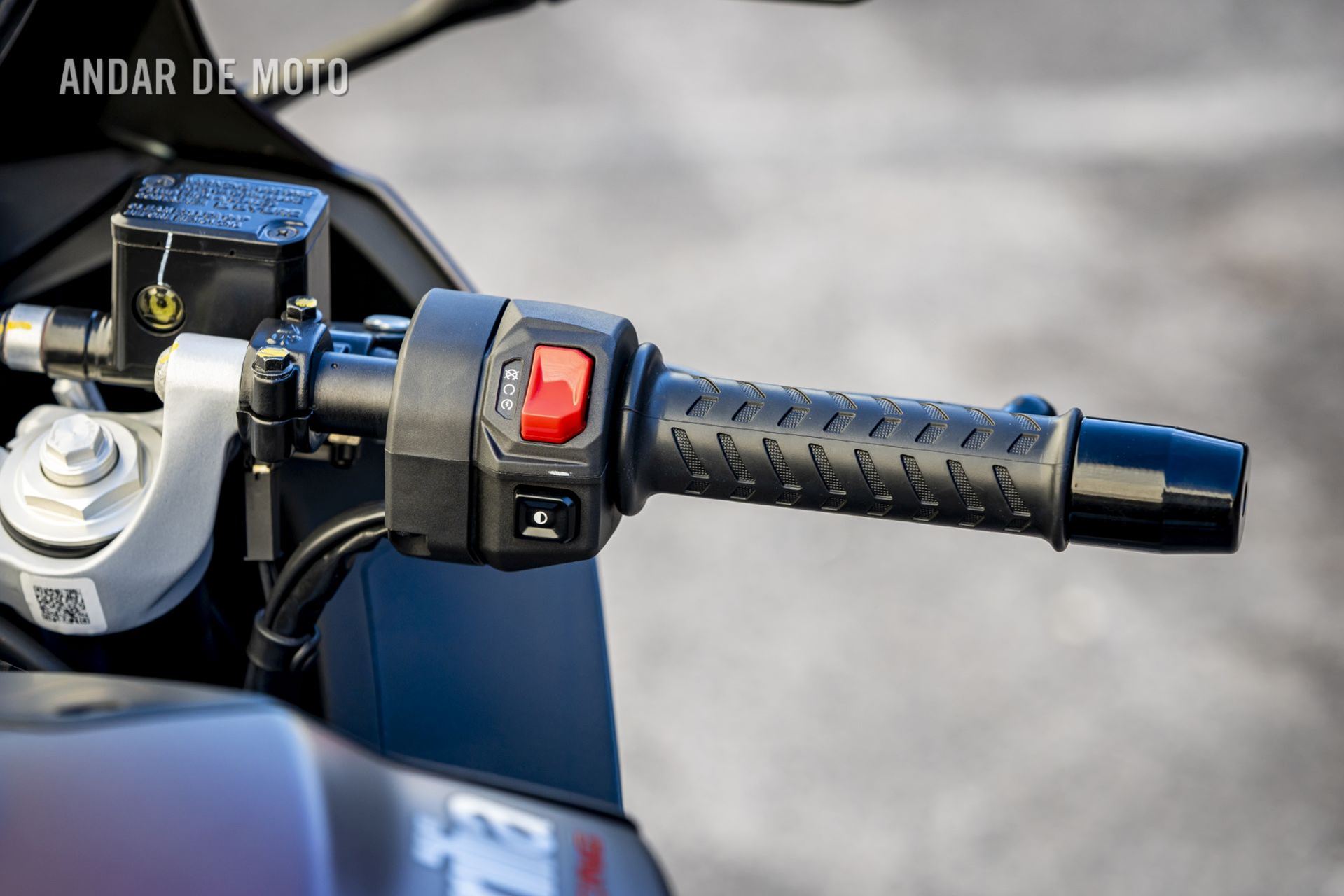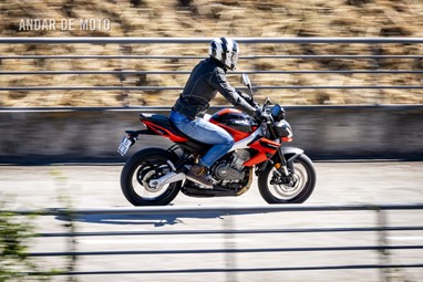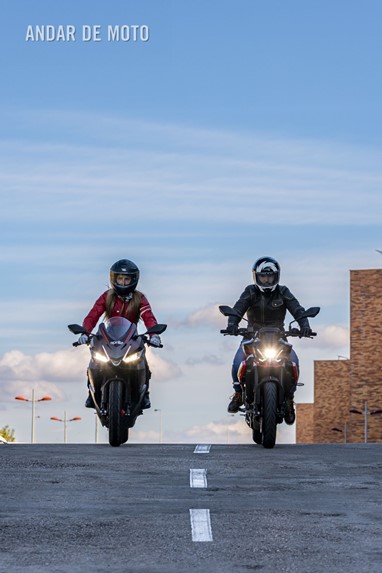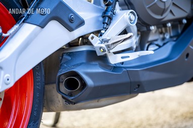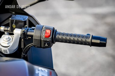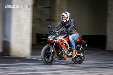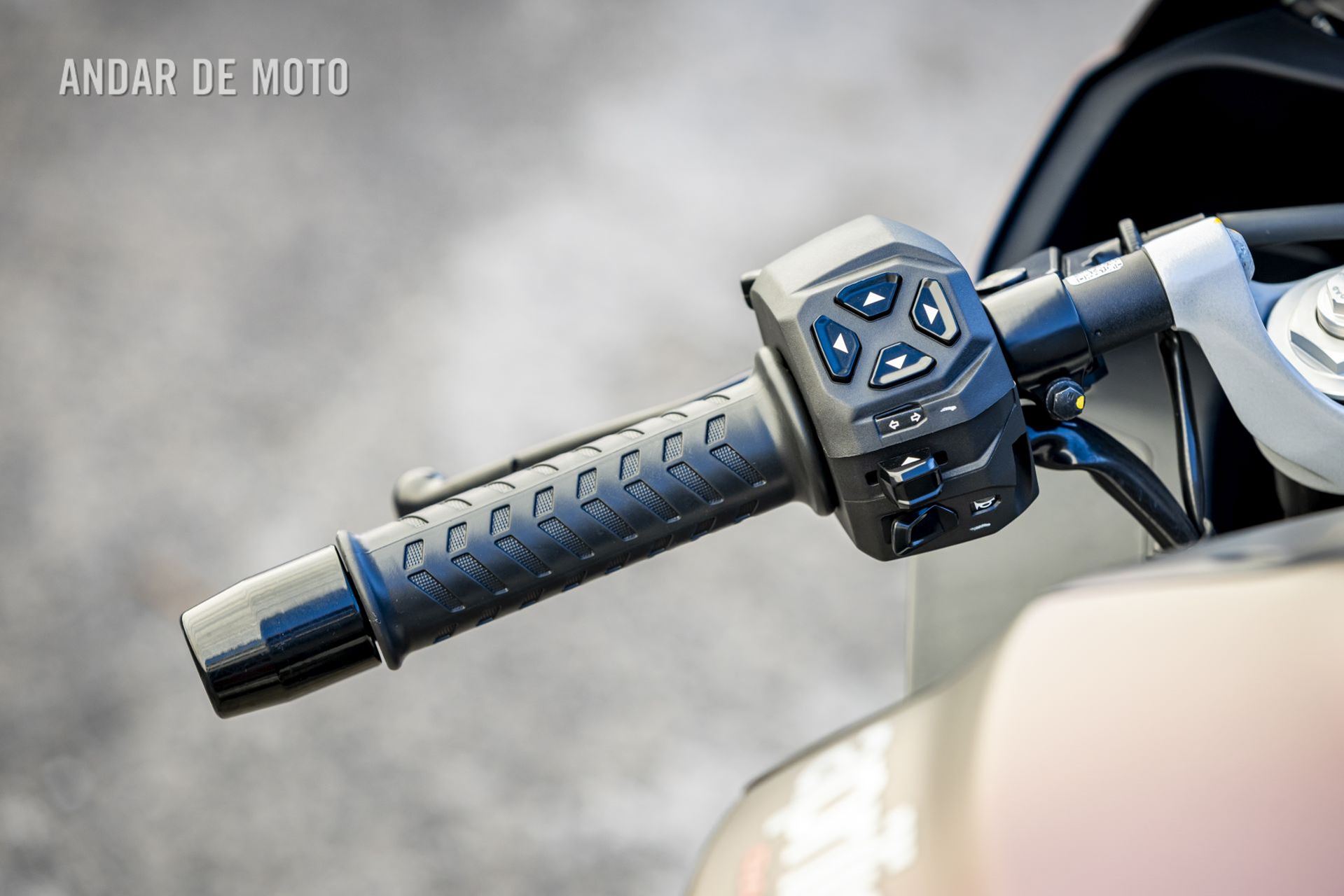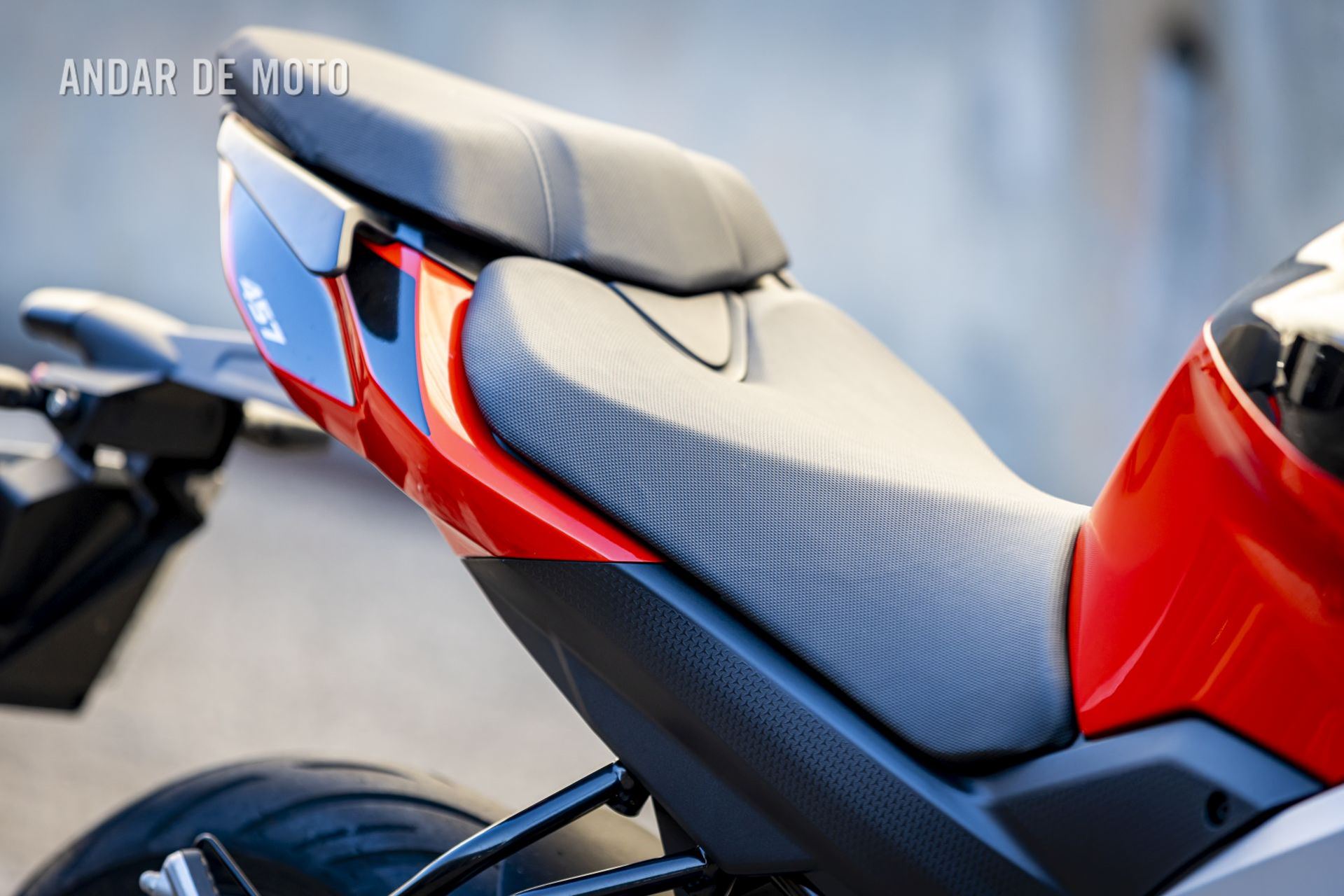 O assento a 810 mm e o guiador de avanços, mais baixo e estreito, obrigam-na a uma postura mais desportiva, mas é precisamente essa posição que lhe transmite a sensação de estar em sintonia com a máquina.