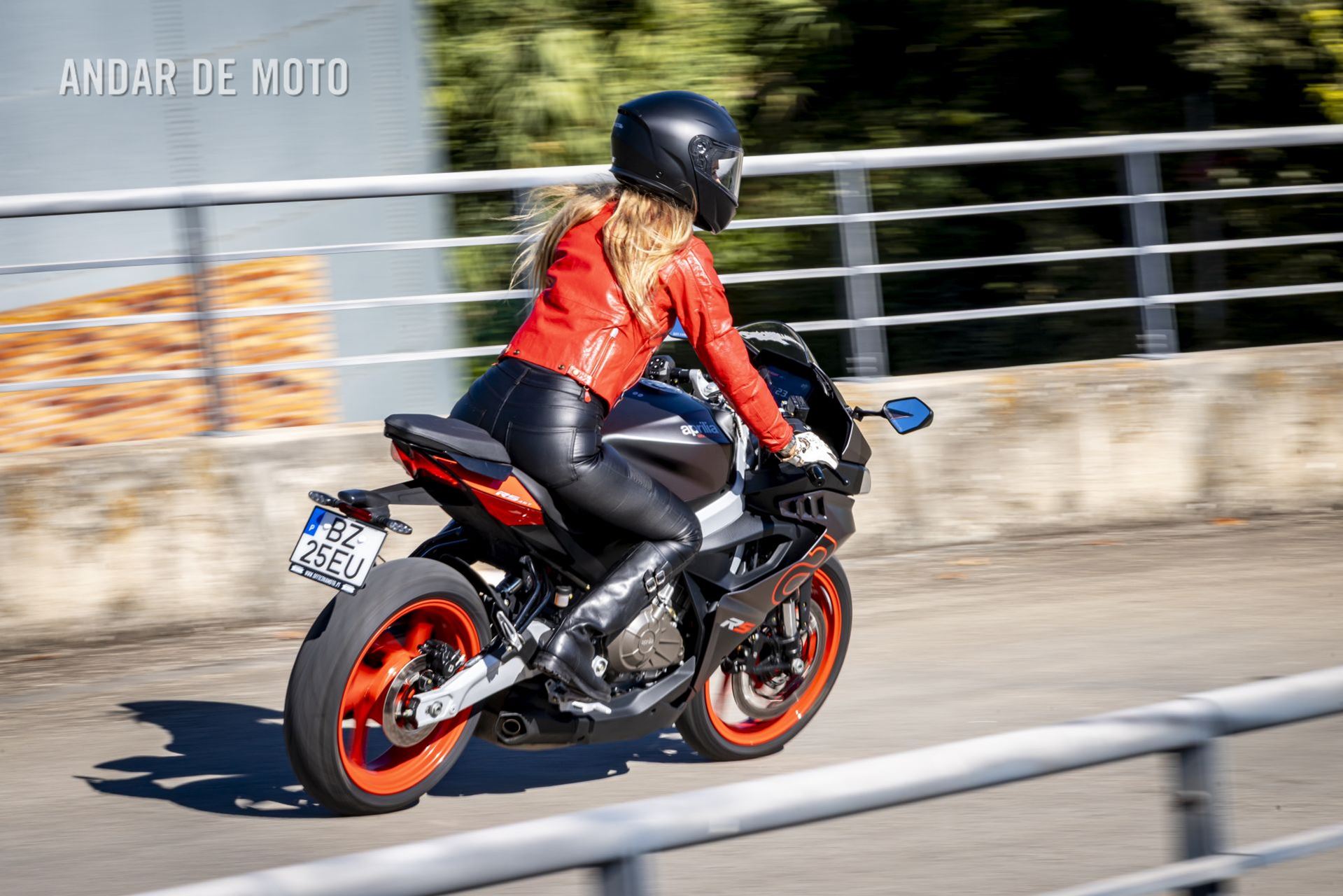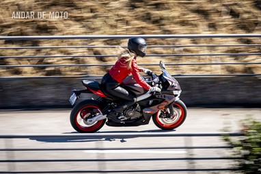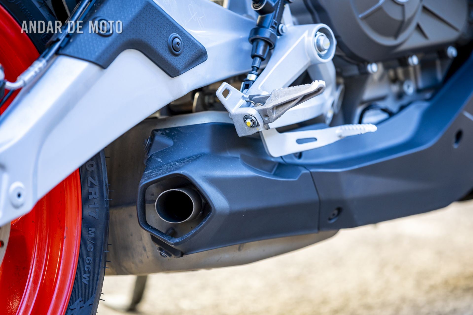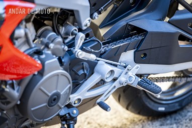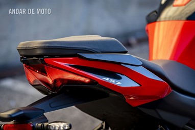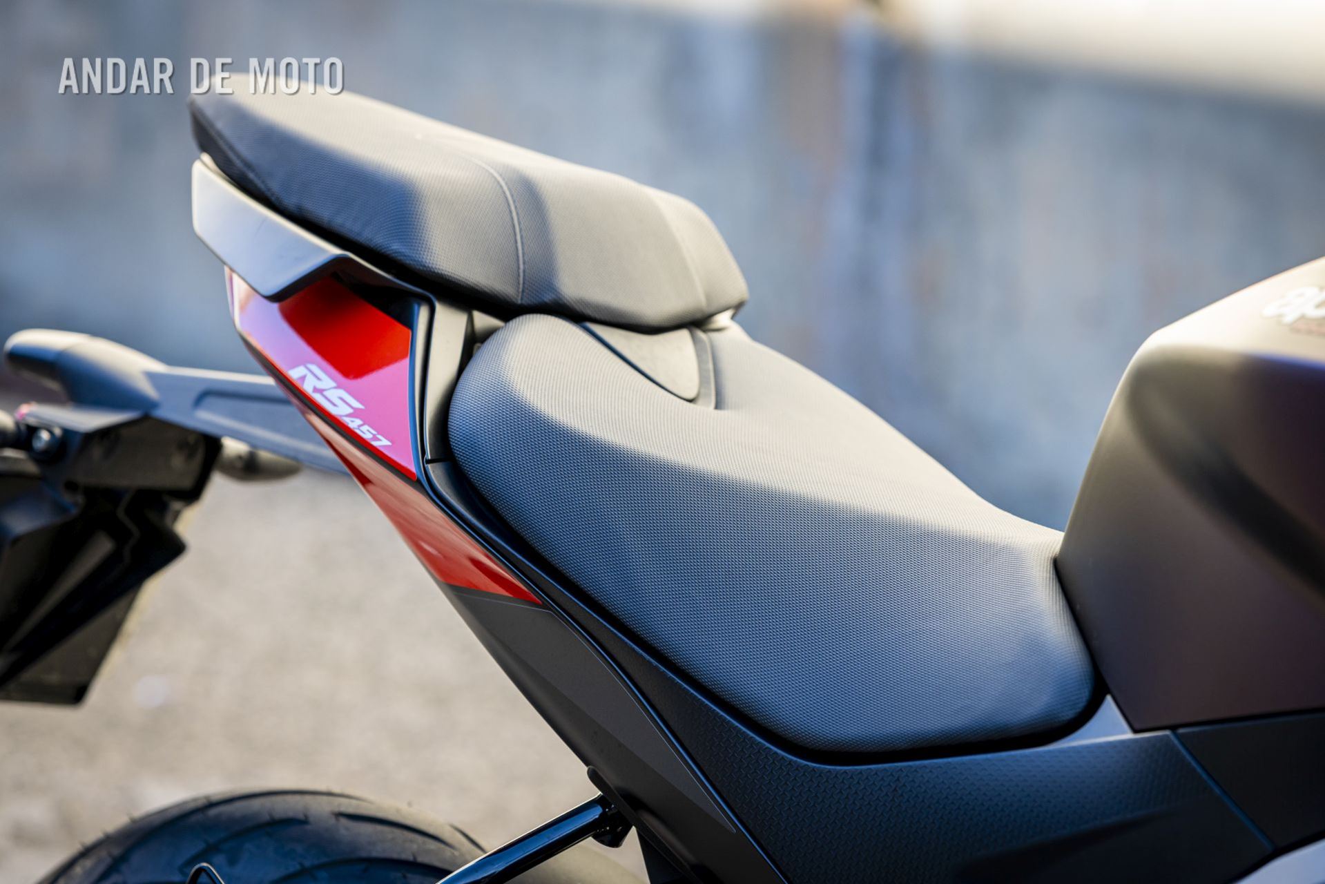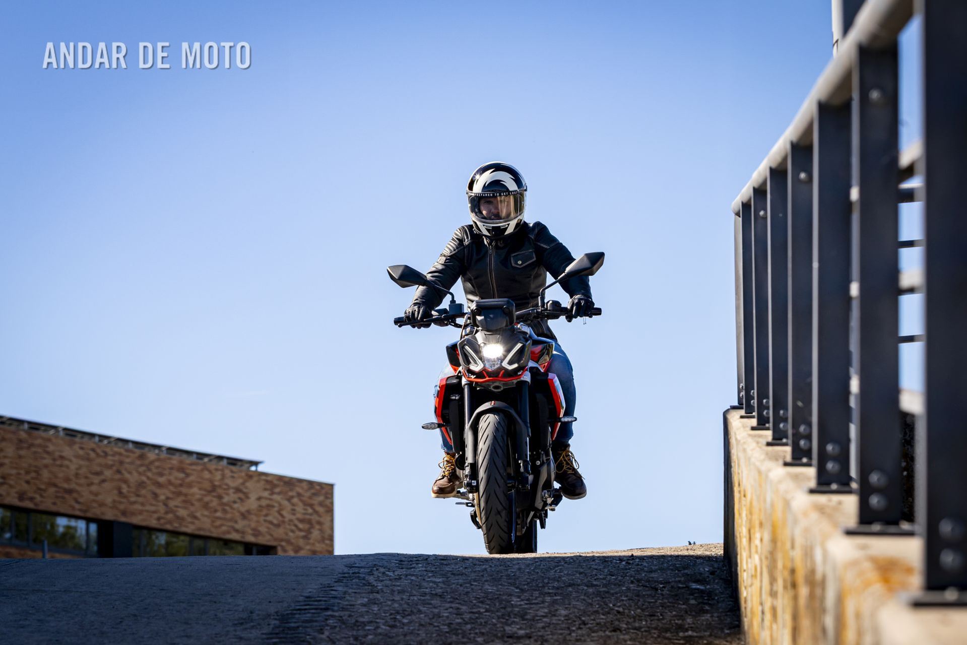 O assento a 810 mm e o guiador de avanços, mais baixo e estreito, obrigam-na a uma postura mais desportiva, mas é precisamente essa posição que lhe transmite a sensação de estar em sintonia com a máquina.