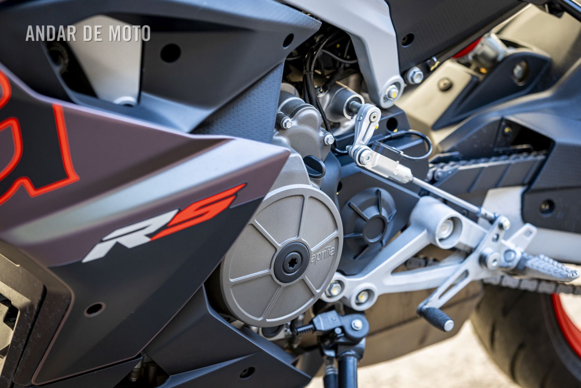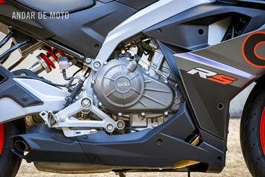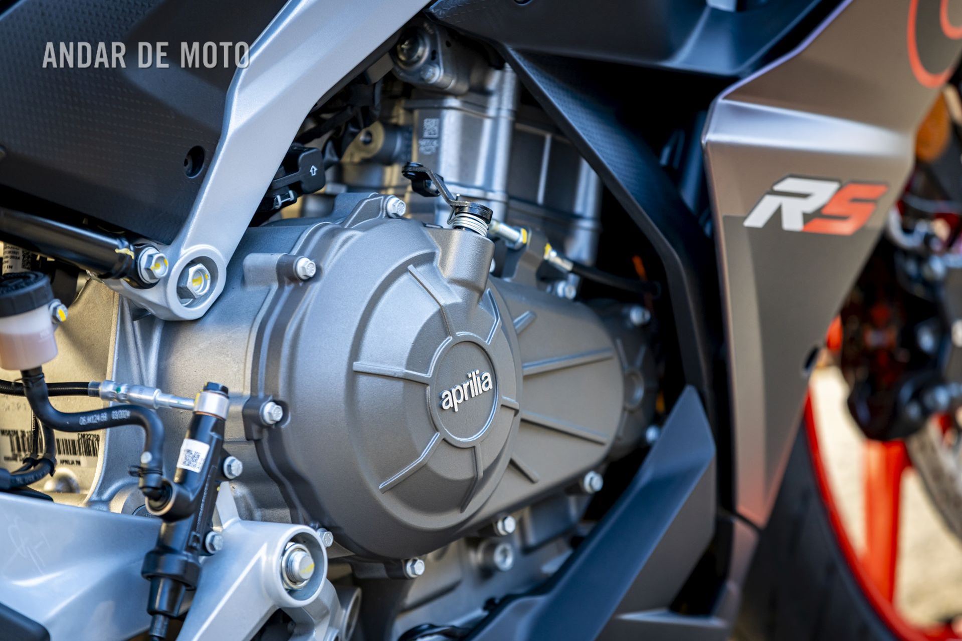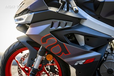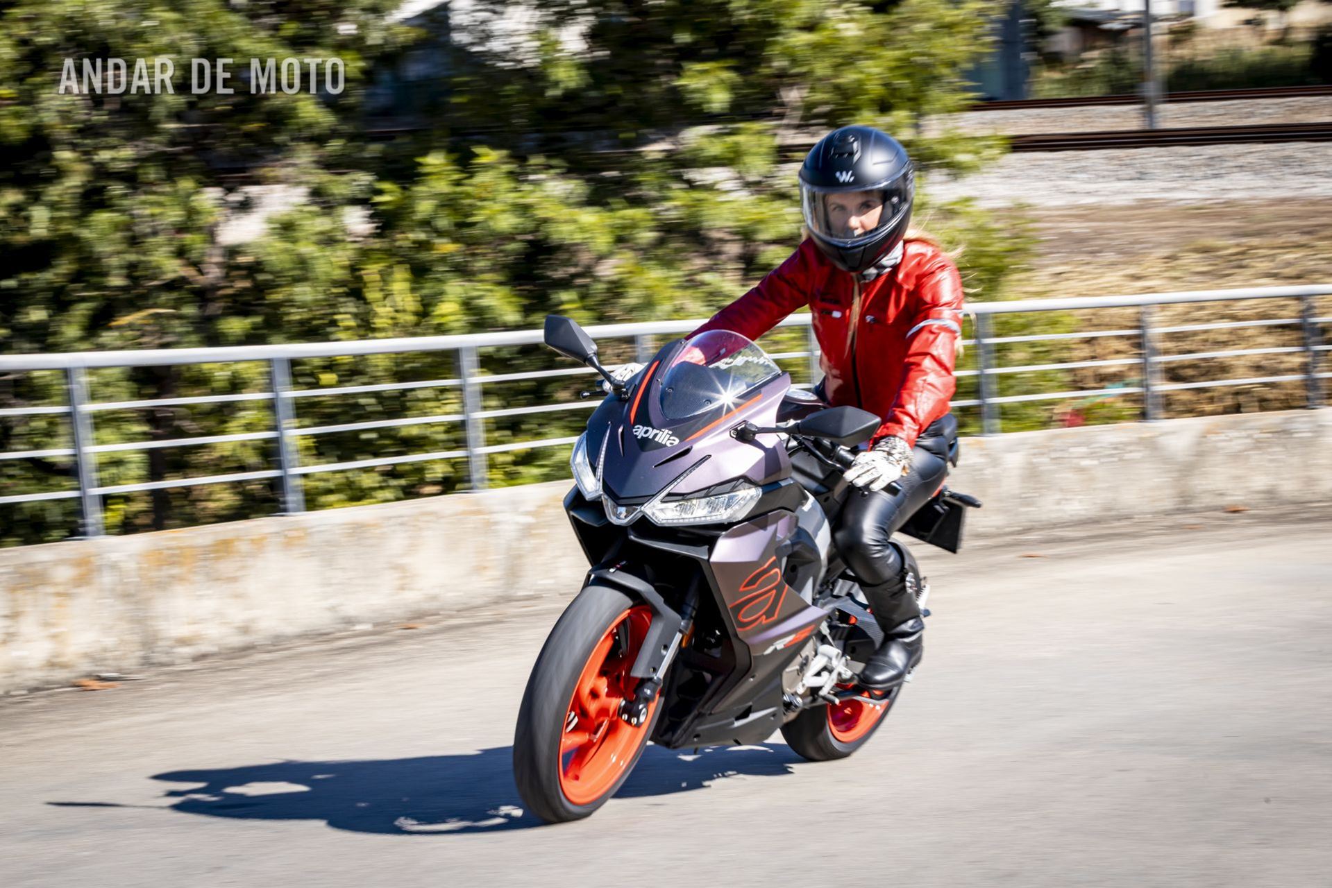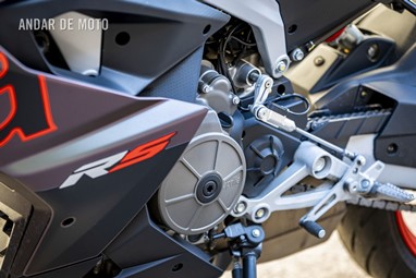 Ela glorifica a resposta imediata e limpa do motor e fala muito da relação peso-potência imbatível da sua RS457 e do excelente comportamento da suspensão que, com 120mm de curso na frente e 130mm na traseira, ajustável em pré-carga, mantém as rodas bem coladas ao asfalto.