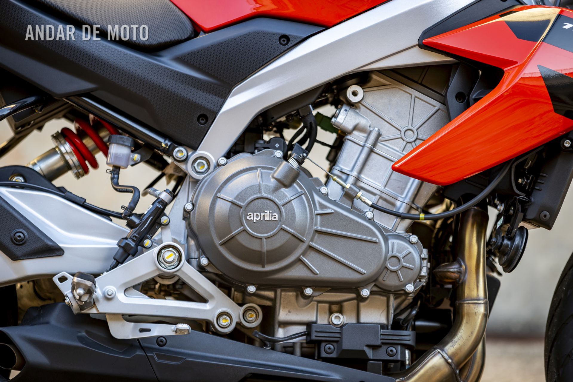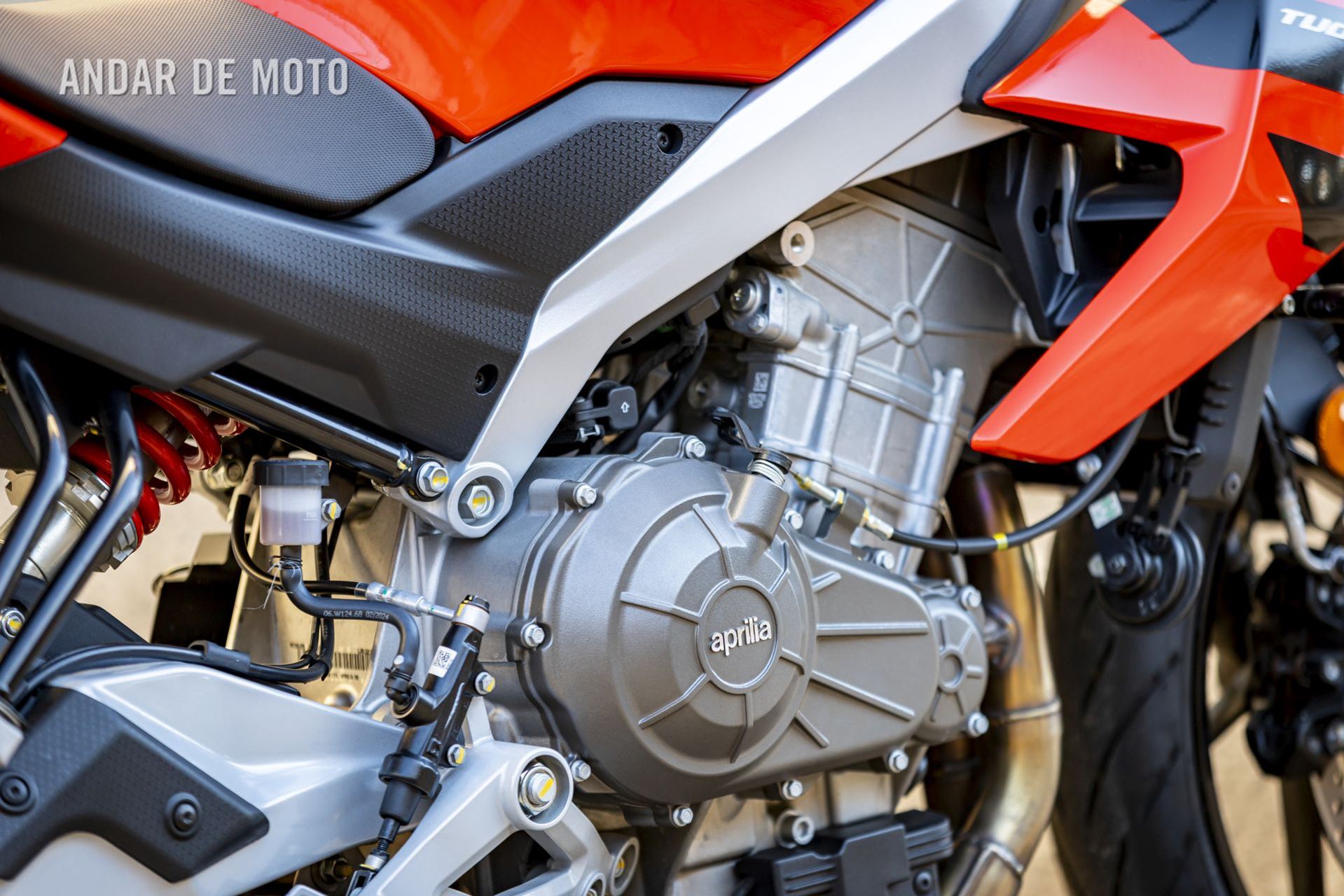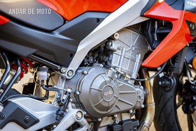Ele refere a boa autonomia e a posição de condução confortável da Tuono, e não se cansa de elogiar o motor bicilíndrico paralelo, refrigerado a líquido, com comando duplo das quatro válvulas por cilindro, a debitar uma potência máxima de 47,6 cv às 9.400 rpm e realça sempre o binário máximo de 43,5 Nm às 6.700 rpm, dos quais 82% ficam disponíveis logo às 3.000 rpm, permitindo retomas interessantes sem ser necessário usar frequentemente a caixa de velocidades.