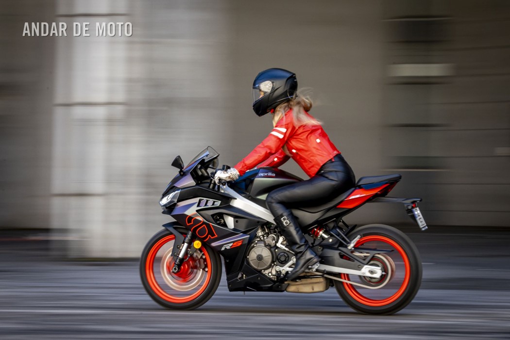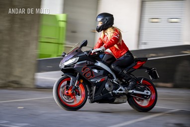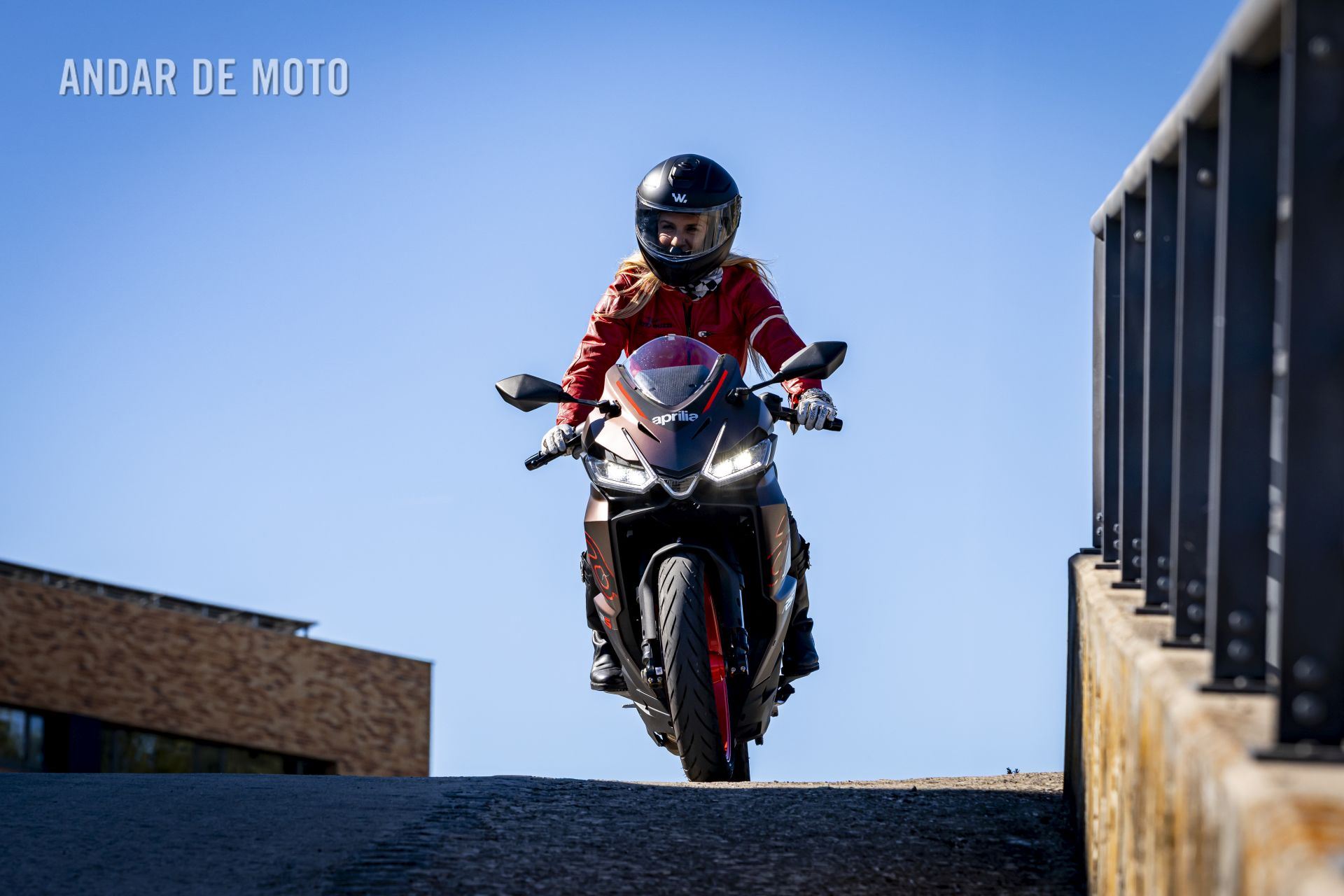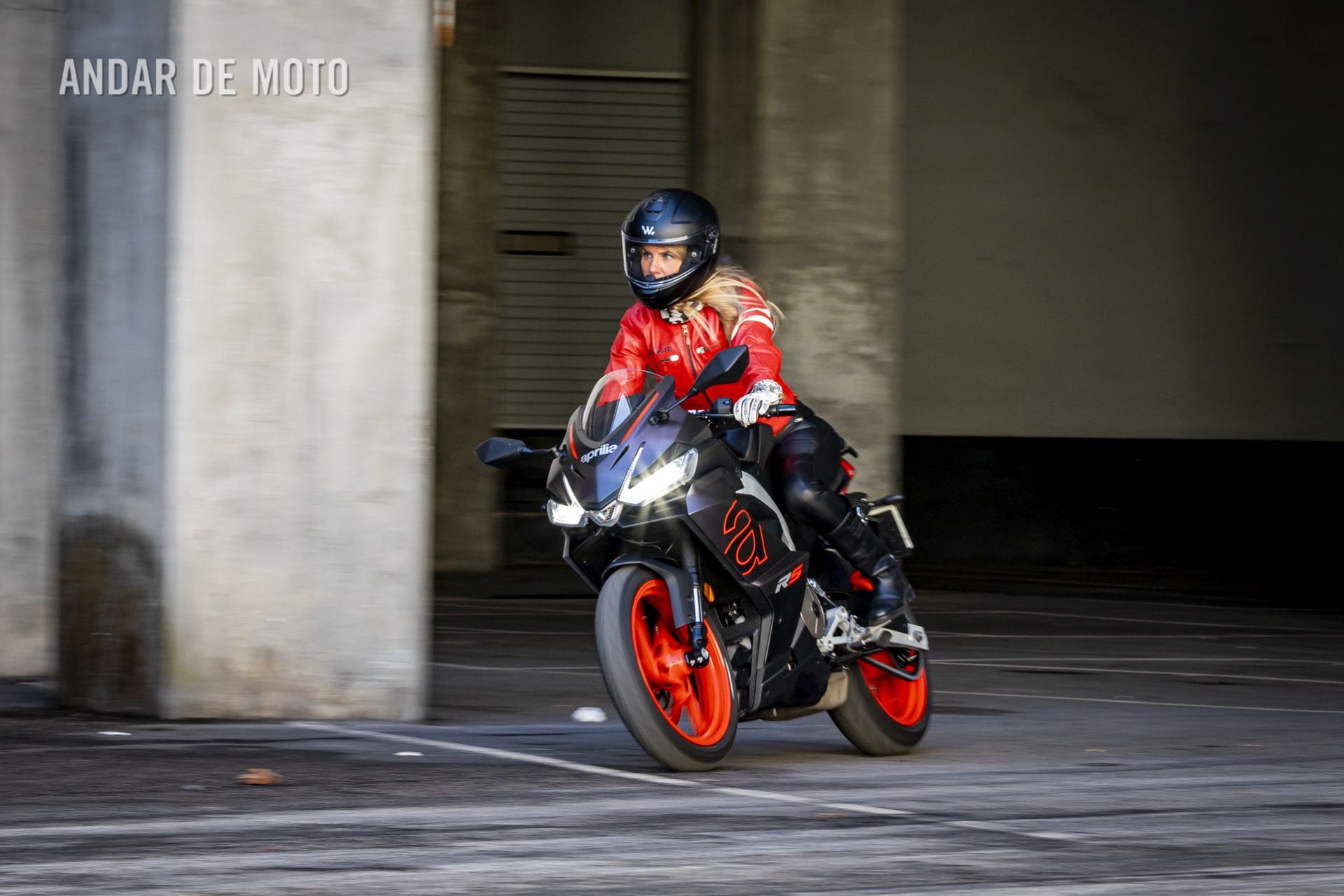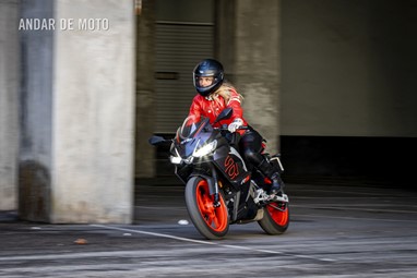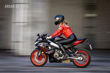 Ela não pode viver sem a sua Aprilia RS457. A desportiva é o reflexo da sua personalidade: leveza, precisão e agilidade. Com apenas 175 kg de peso em ordem de marcha e uma potência máxima de 47 cv, a RS457 parece feita propositadamente para ela.