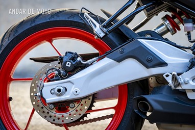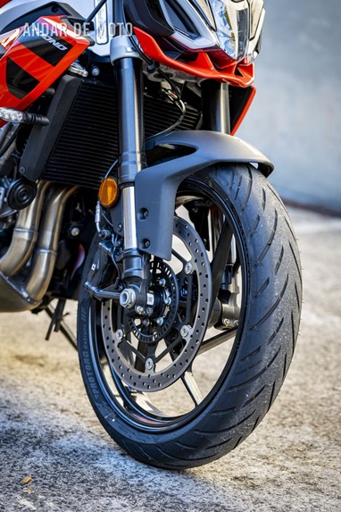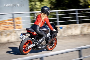 A forquilha invertida KYB e o monoamortecedor traseiro, ambos ajustáveis, oferecem-lhe conforto e precisão, enquanto o sistema de travagem, assistido por ABS de dois canais, lhe permite dosear cada travagem com suavidade ou firmeza, conforme a situação e sempre com enorme confiança. Para ela, cada curva é uma dança, cada aceleração um sorriso, cada travagem um embalo, cada rodar de punho uma dose de adrenalina.
