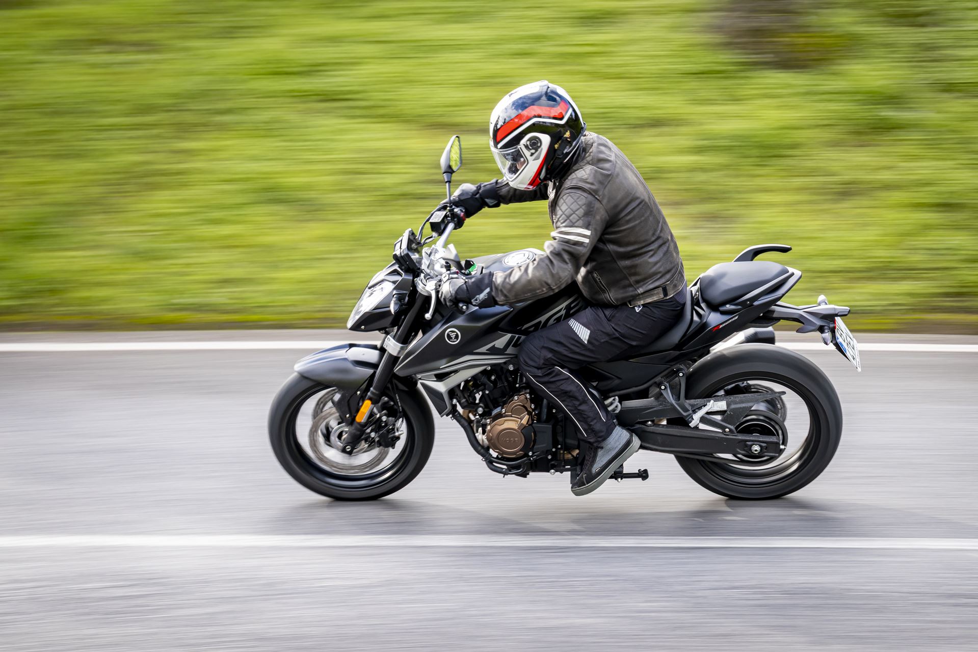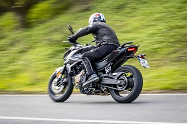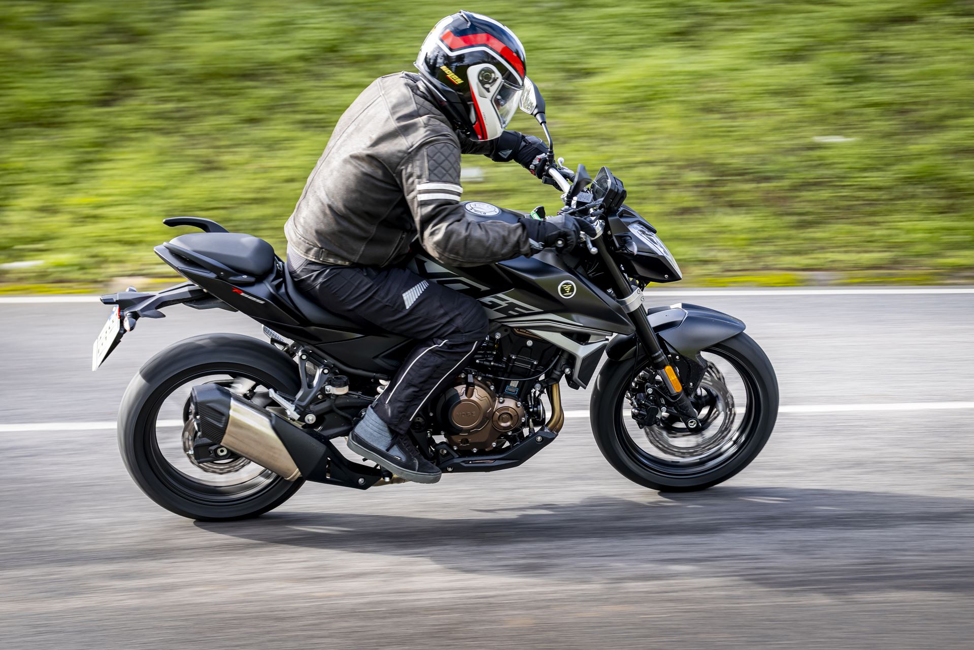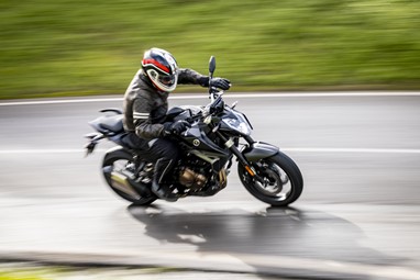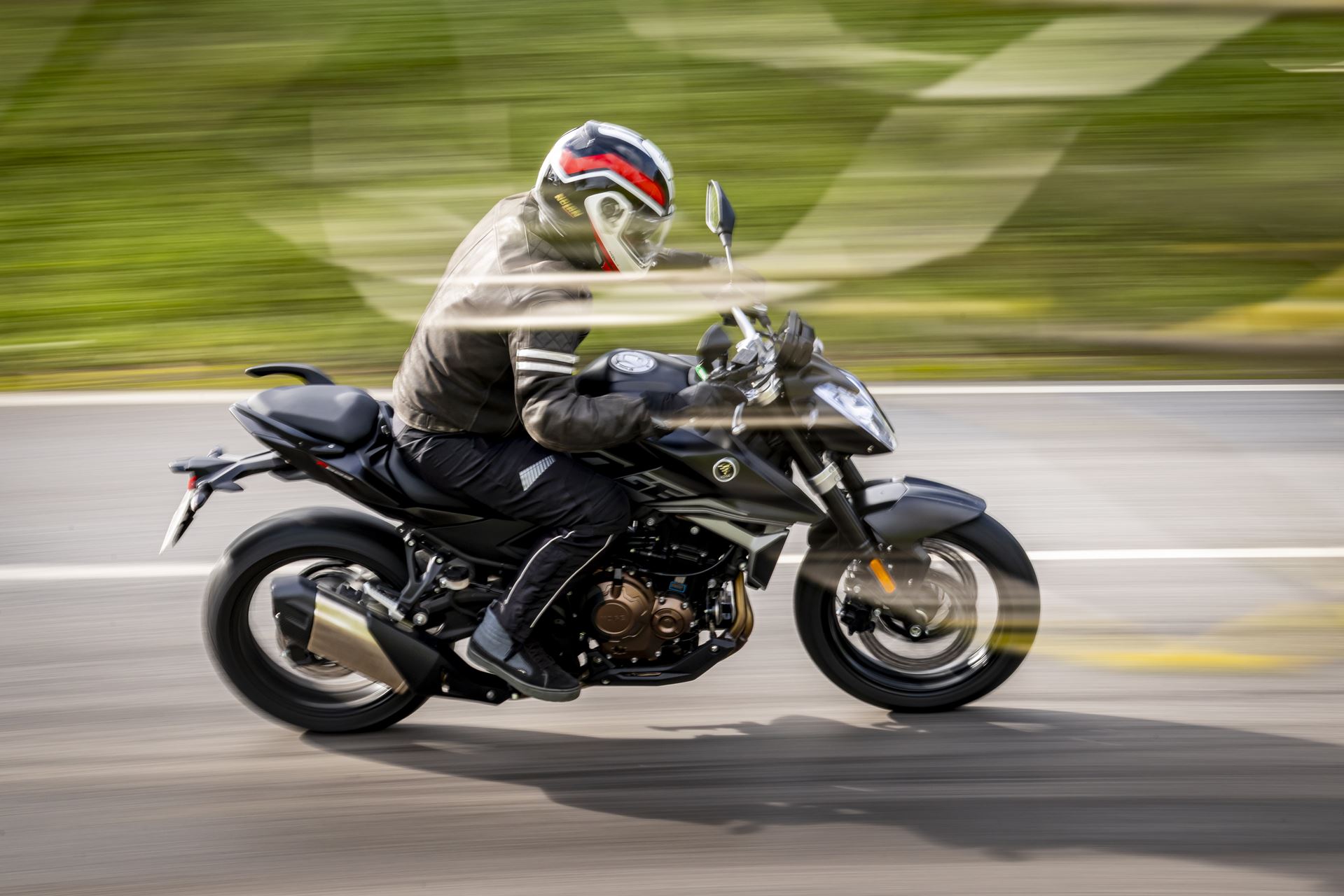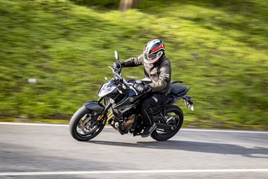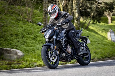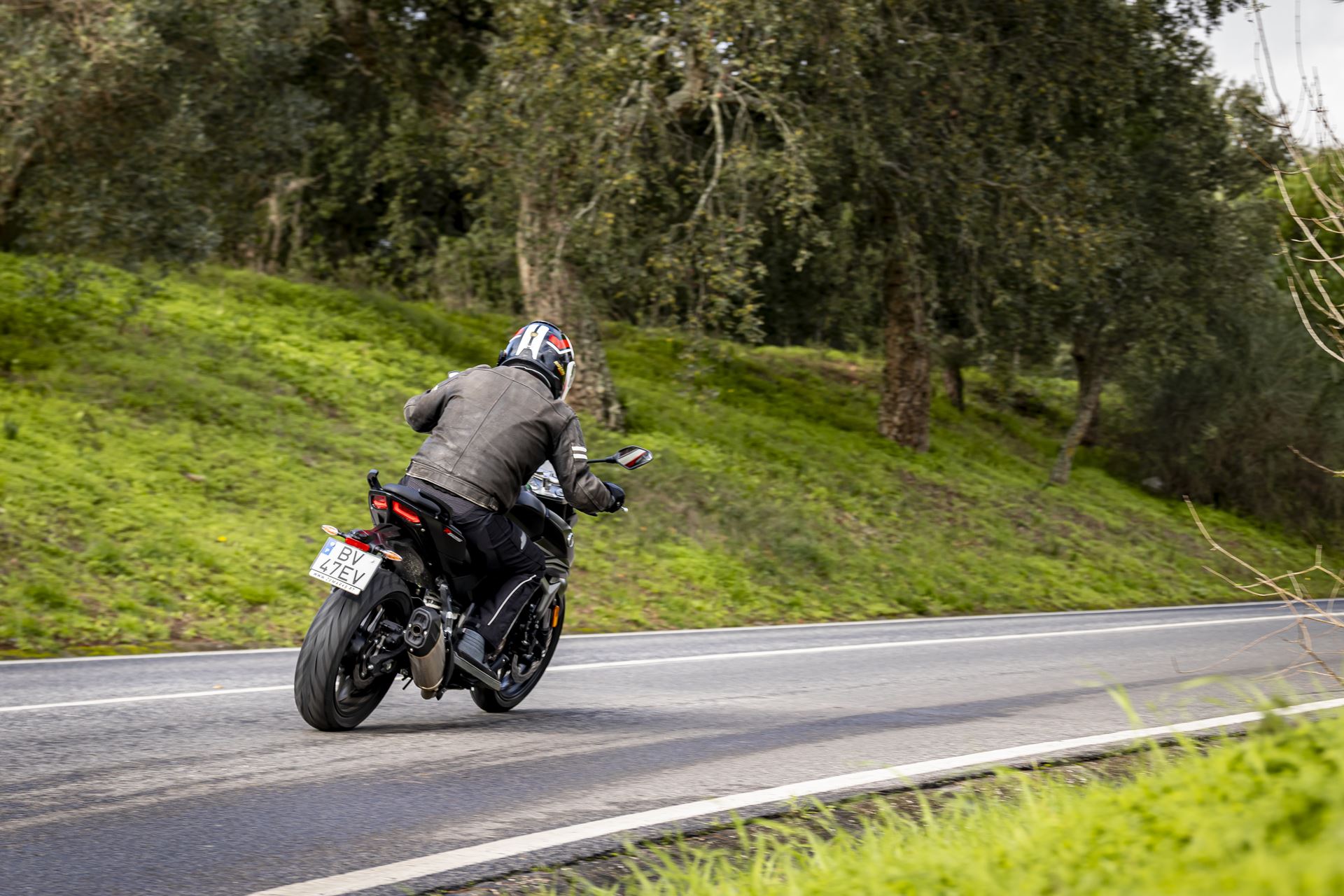 Já no piso mais degradado e irregular, as suspensões, nomeadamente a forquilha, mostra alguma dificuldade em ler o asfalto e retira alguma confiança. Também a circulação a velocidades mais elevadas o motor começa a transmitir alguma vibração. Não é uma moto adequada para andar constantemente no último terço do conta rotações.