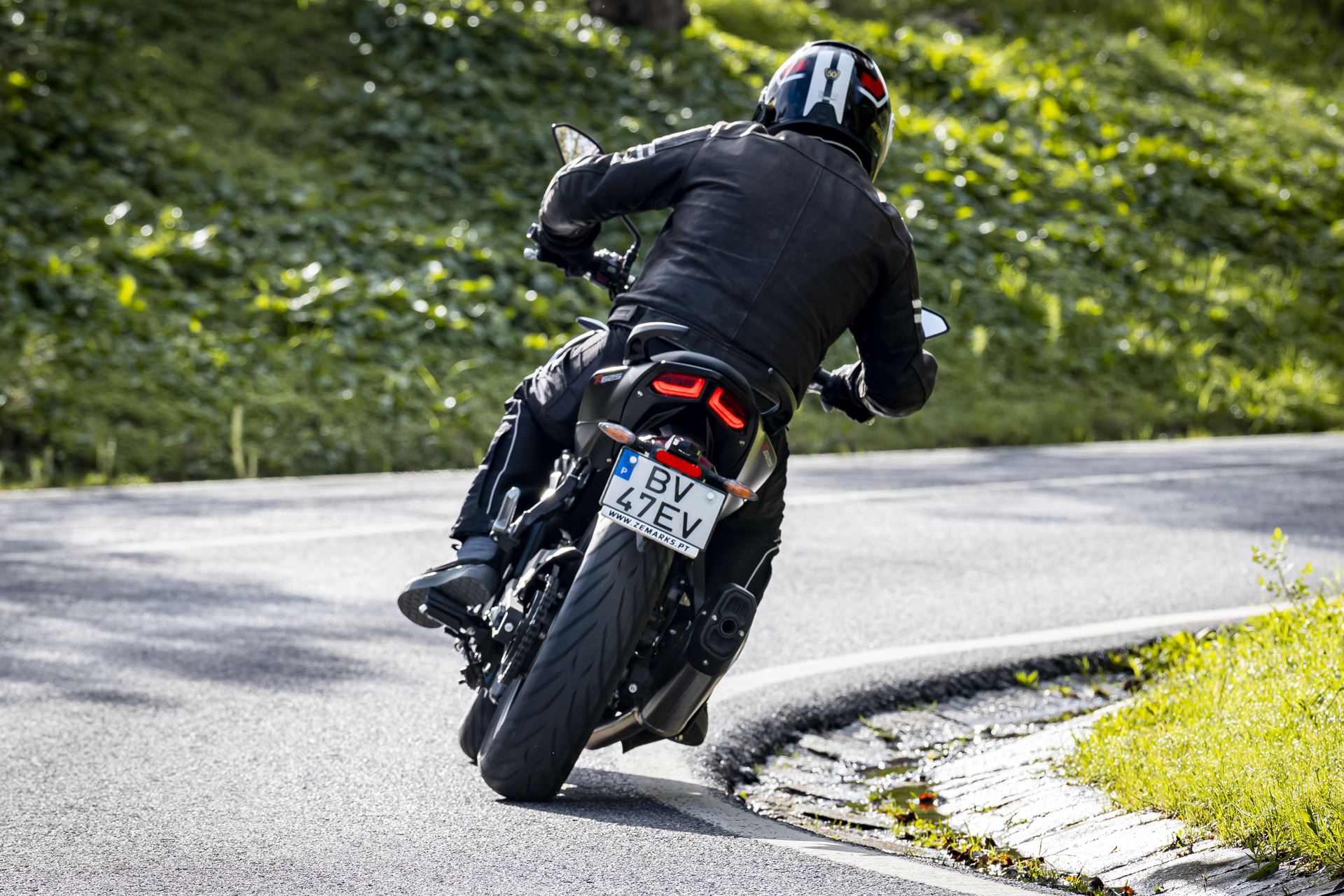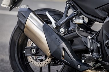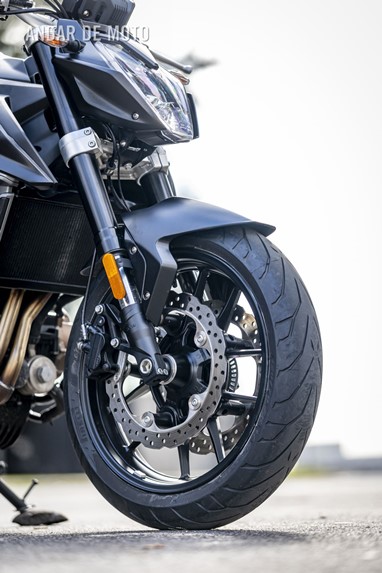 Já as jantes são de 17 polegadas, com uns ótimos pneus Pirelli Angel GT, nas medidas 120/70×17″ na frente e 160/60×17″ atrás, que convidam a uma condução mais empenhada, sendo que a boa rigidez do quadro ajuda, tal como os travões que se revelaram fortes e progressivos.