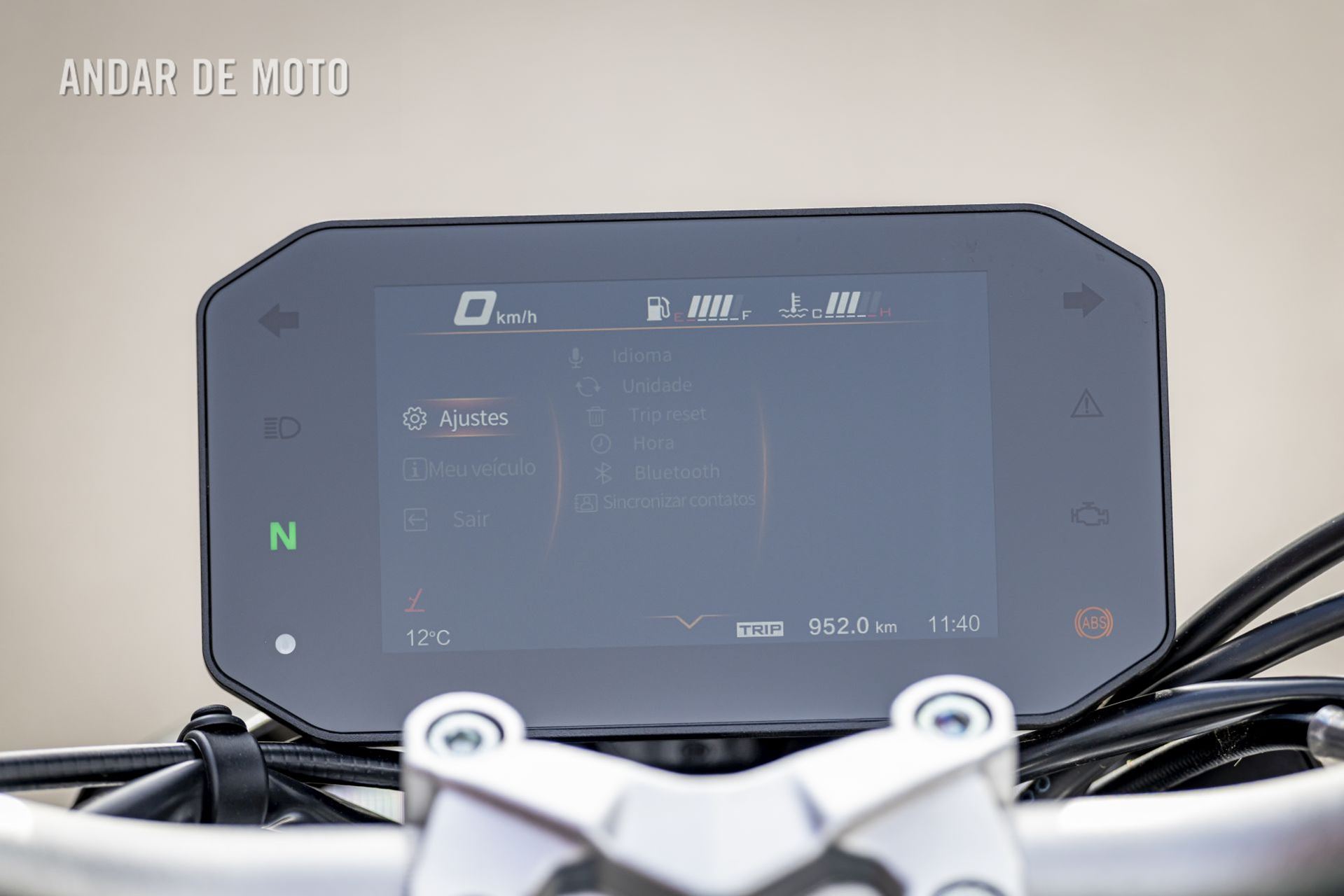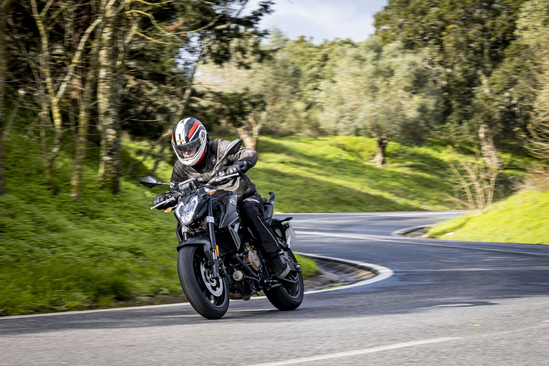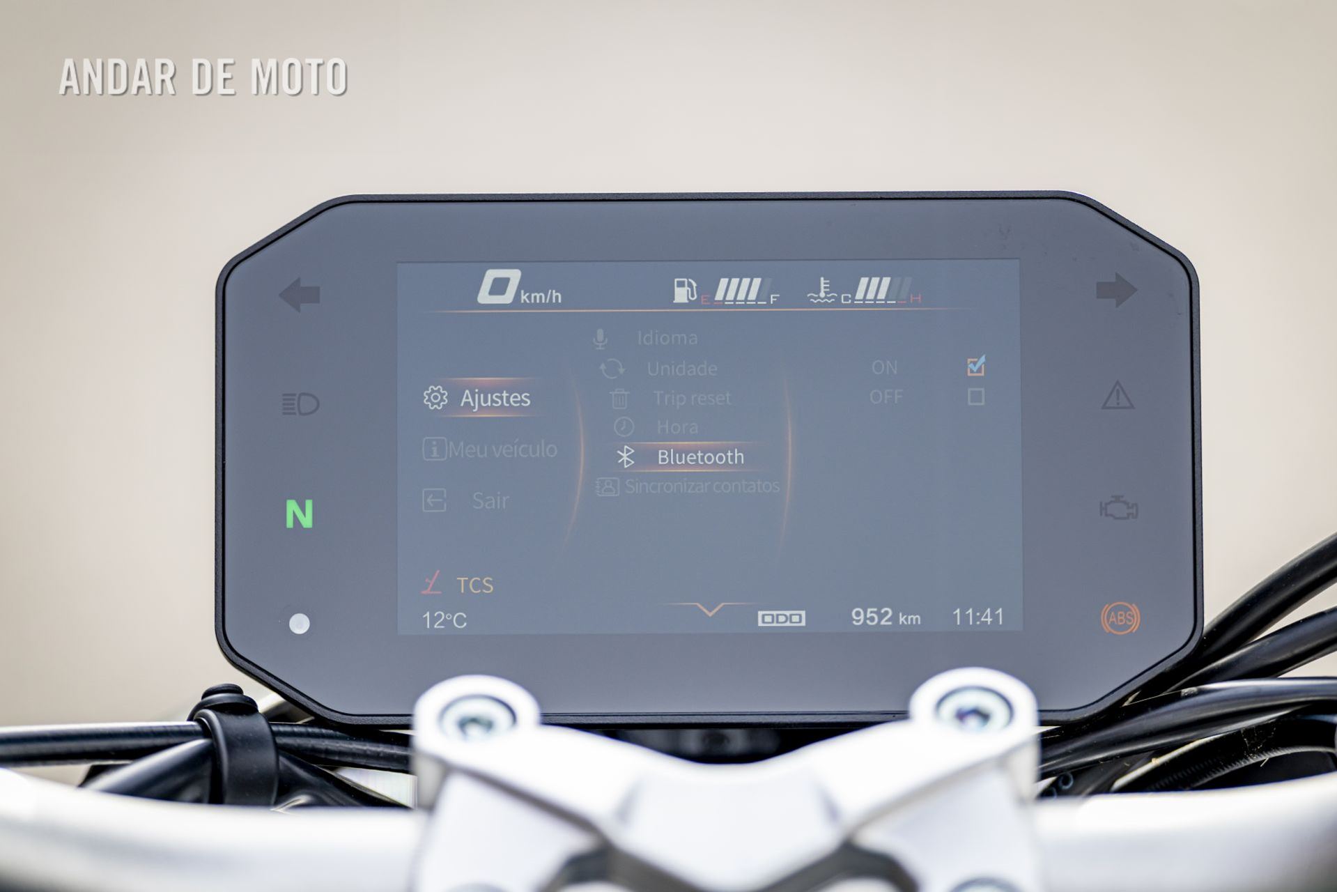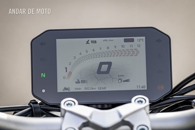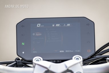 Acciono o motor de arranque e enquanto o motor ganha temperatura vejo a posição dos comandos, e aprecio os carateres do pequeno ecrã TFT de 5’’ que disponibiliza muita informação, mas algo confusa. E vejo como os meus joelhos encaixam nas laterais do depósito que carrega 16,5 litros e garante autonomias próximas dos 400 km. Logo nos primeiros quilómetros percebe-se que é uma moto bem-nascida. Fácil de conduzir, com reações equilibradas, um sistema de travagem eficaz, tudo potenciado pelos pneus Pirelli Angel GT. Um convite para uma condução divertida, com alguns abusos à mistura, mas sem ir além do razoável.