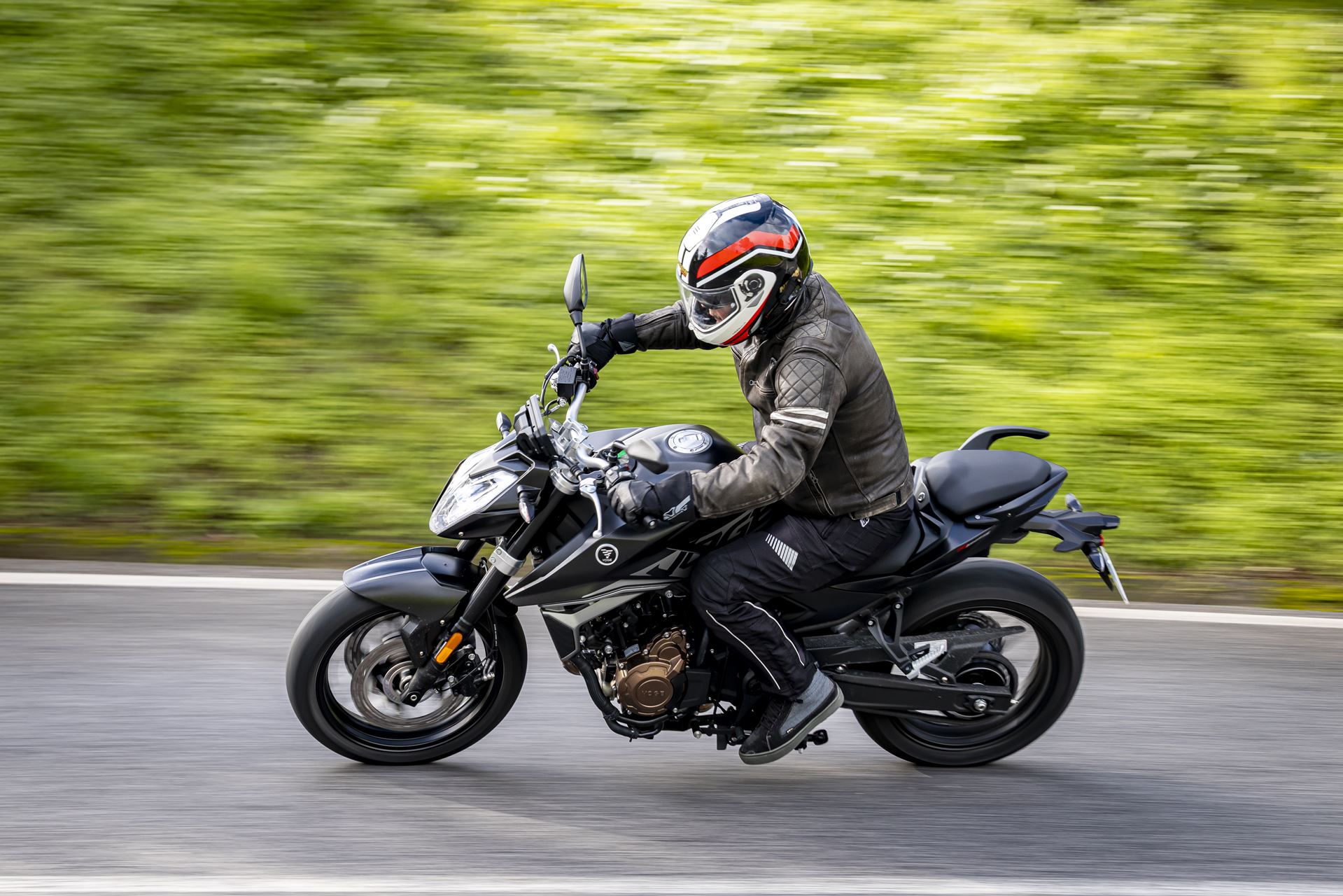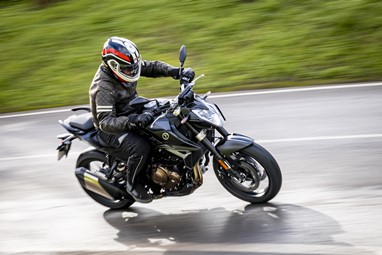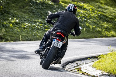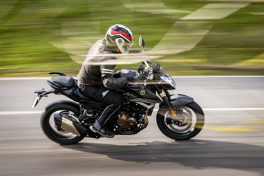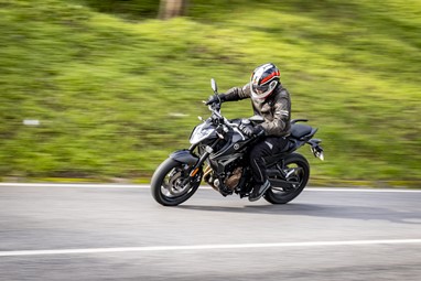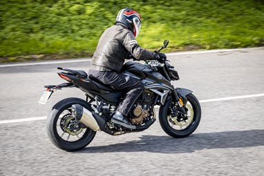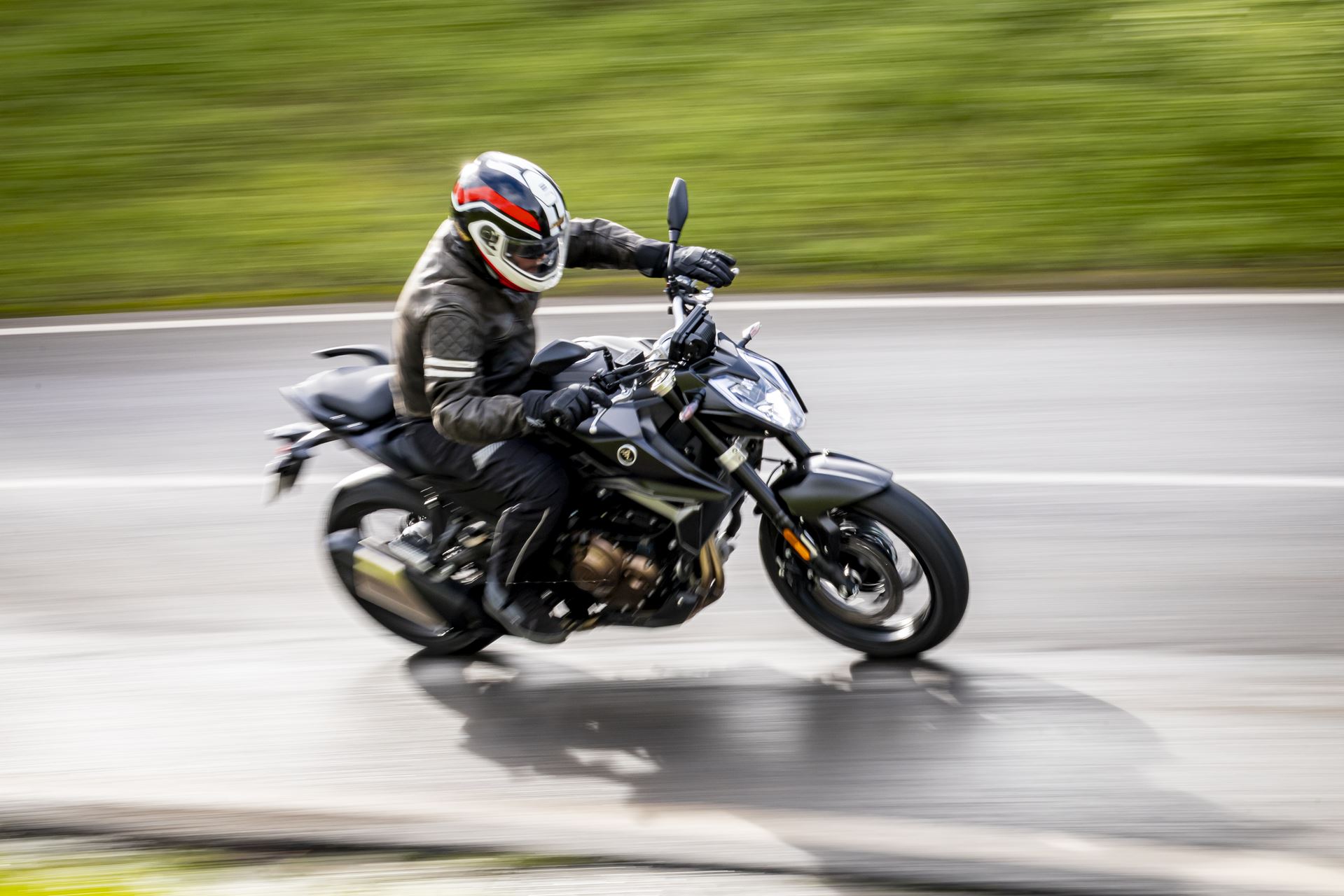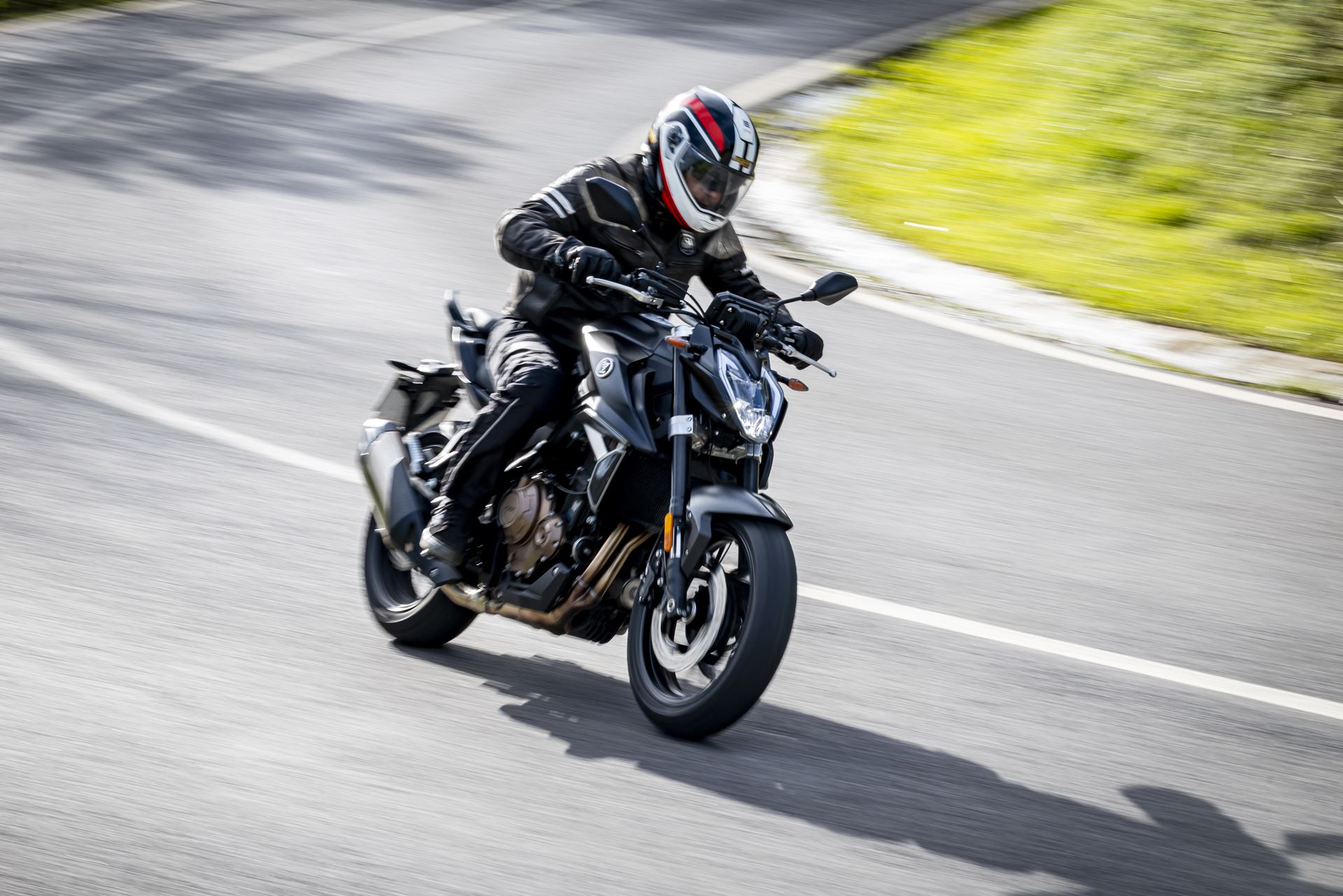 Acciono o motor de arranque e enquanto o motor ganha temperatura vejo a posição dos comandos, e aprecio os carateres do pequeno ecrã TFT de 5’’ que disponibiliza muita informação, mas algo confusa. E vejo como os meus joelhos encaixam nas laterais do depósito que carrega 16,5 litros e garante autonomias próximas dos 400 km. Logo nos primeiros quilómetros percebe-se que é uma moto bem-nascida. Fácil de conduzir, com reações equilibradas, um sistema de travagem eficaz, tudo potenciado pelos pneus Pirelli Angel GT. Um convite para uma condução divertida, com alguns abusos à mistura, mas sem ir além do razoável.