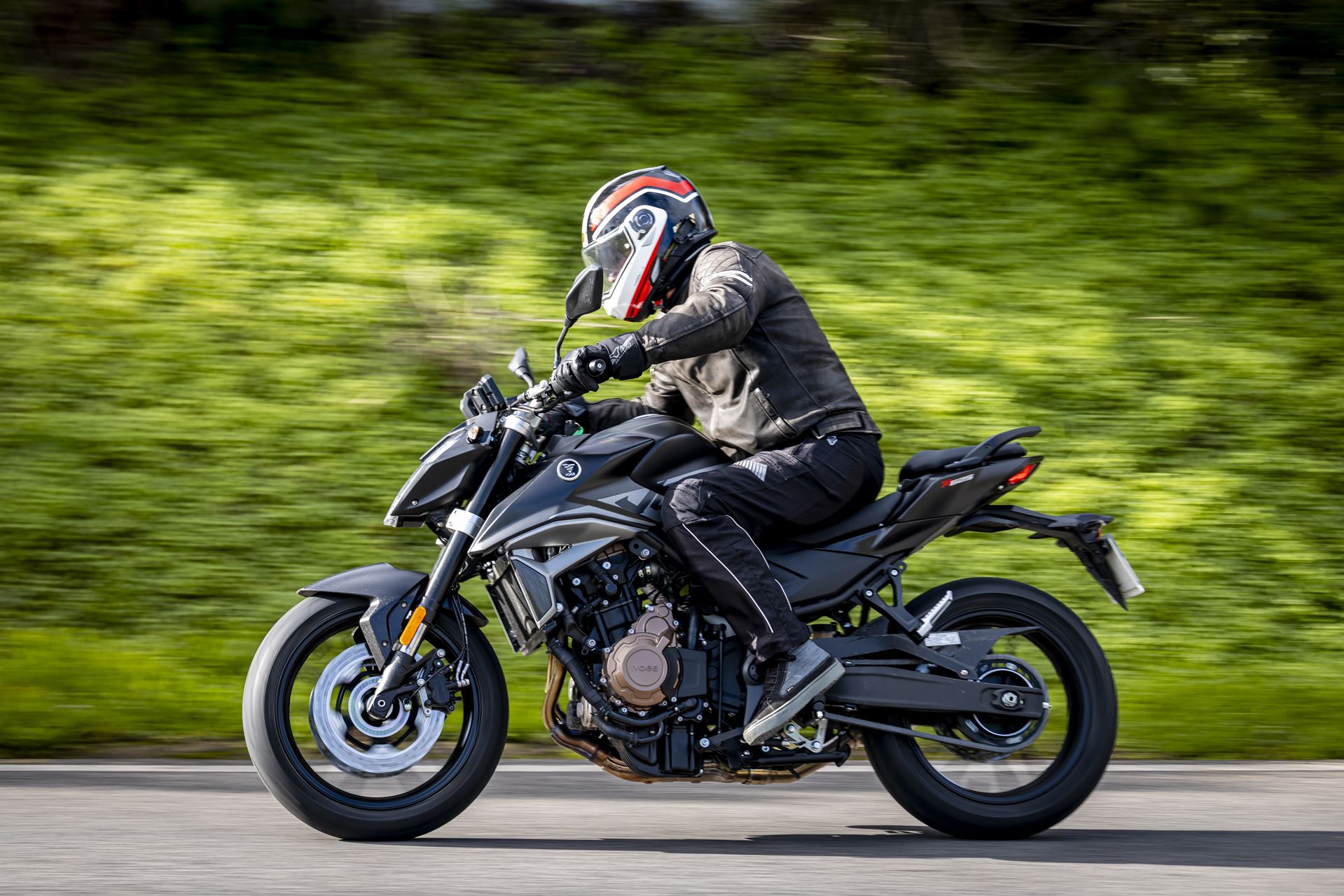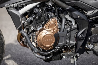 O motor é um bicilíndrico paralelo, de 581 cc, com dupla árvore de cames à cabeça, quatro válvulas por cilindro, cambota a 270°, e veio de equilíbrio, a debitar 64 cv de potência máxima atingida às 9000 rpm, apesar de no taquímetro a zona vermelha começar às 8.500 rpm. O binário máximo é de 58 Nm às 6500 rpm. São valores que não impressionam, não comprometem, mas que tampouco nos deixam envergonhados.
